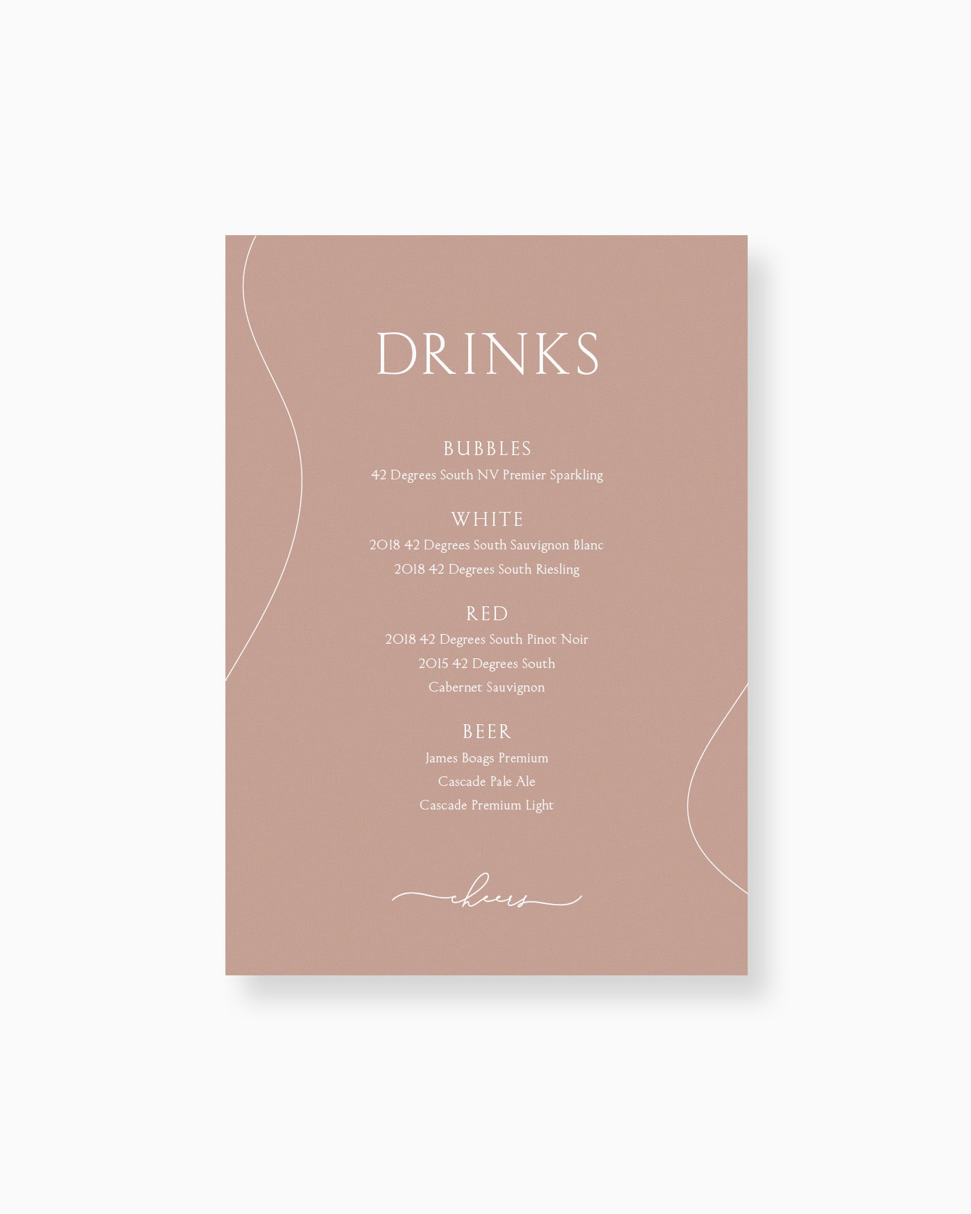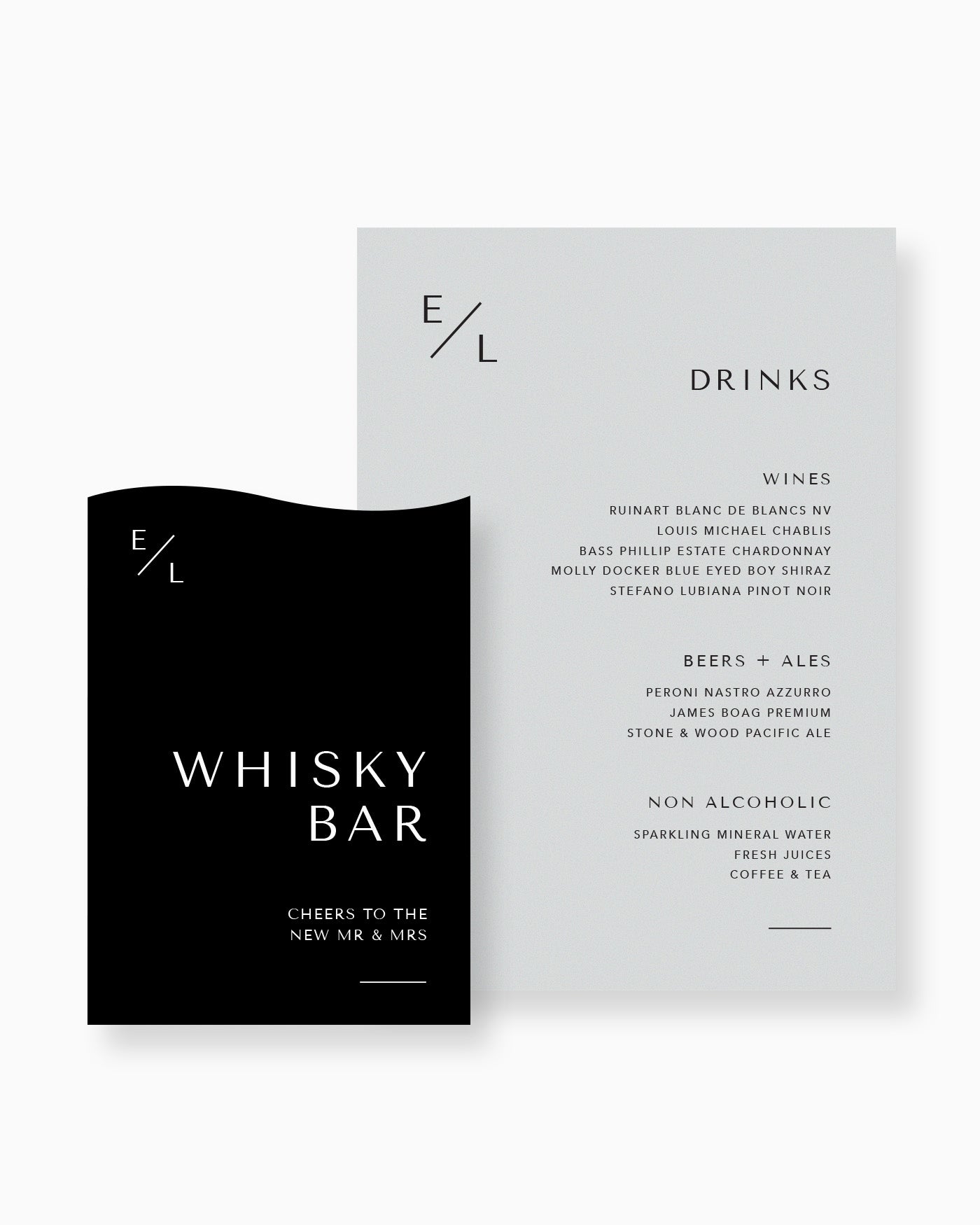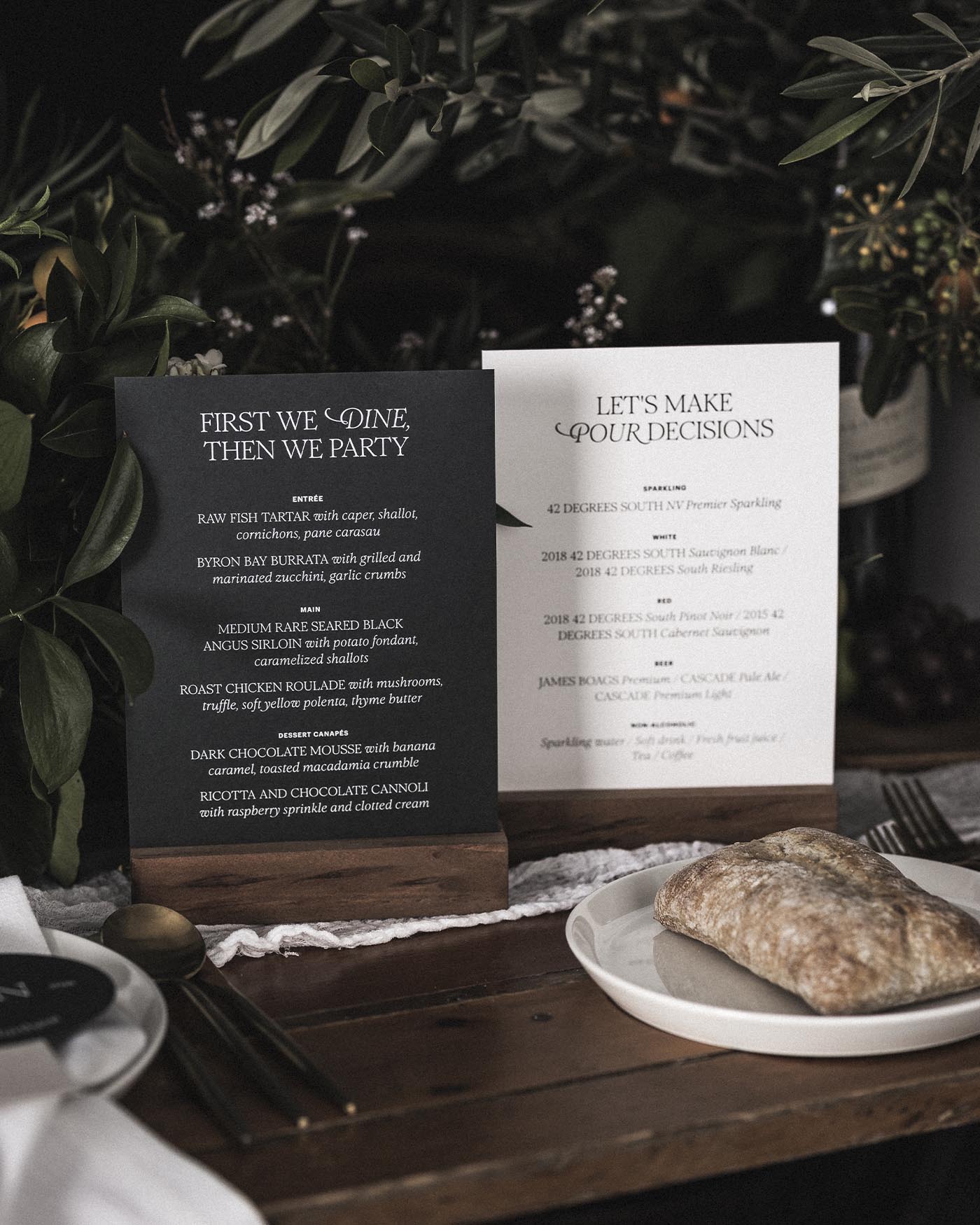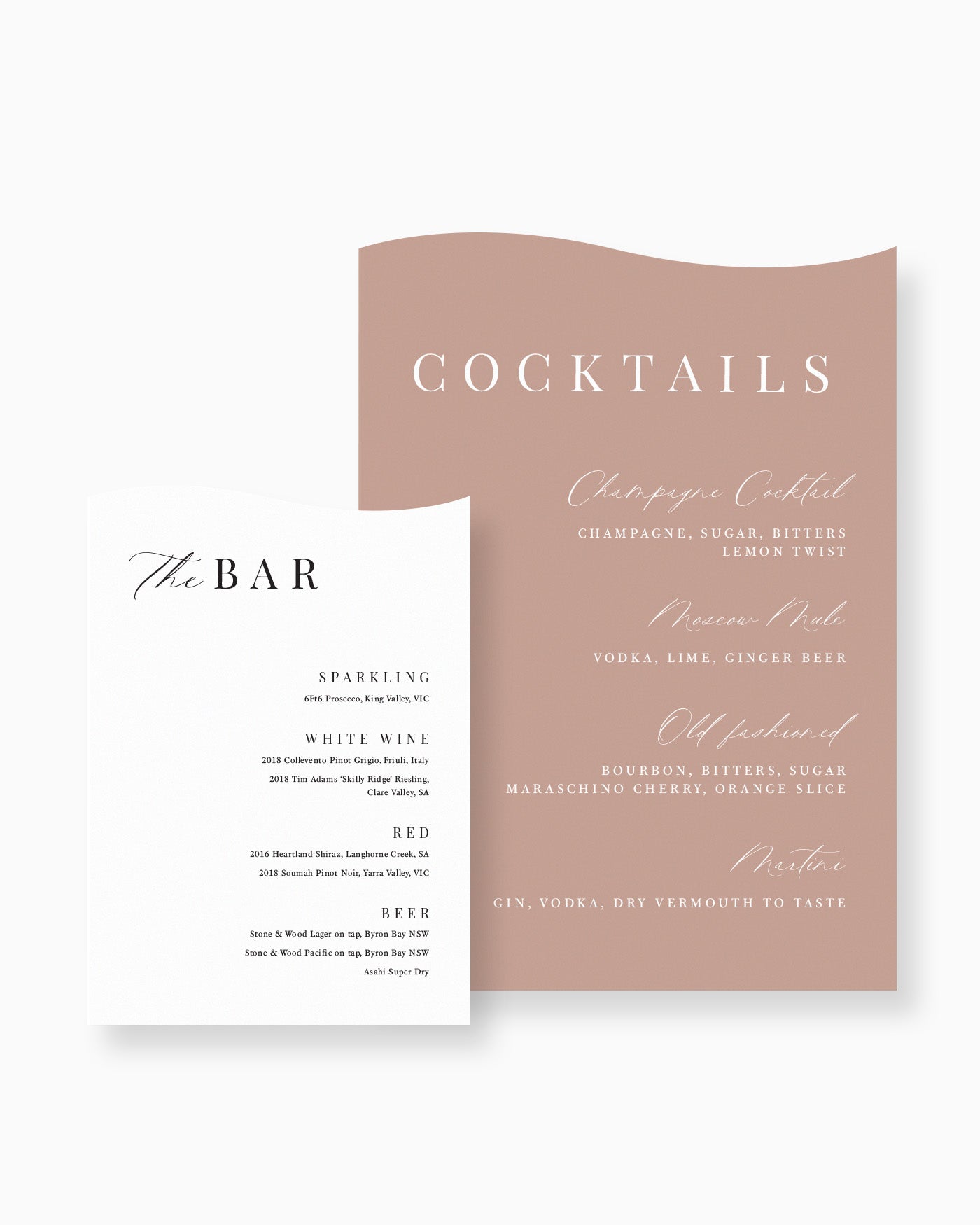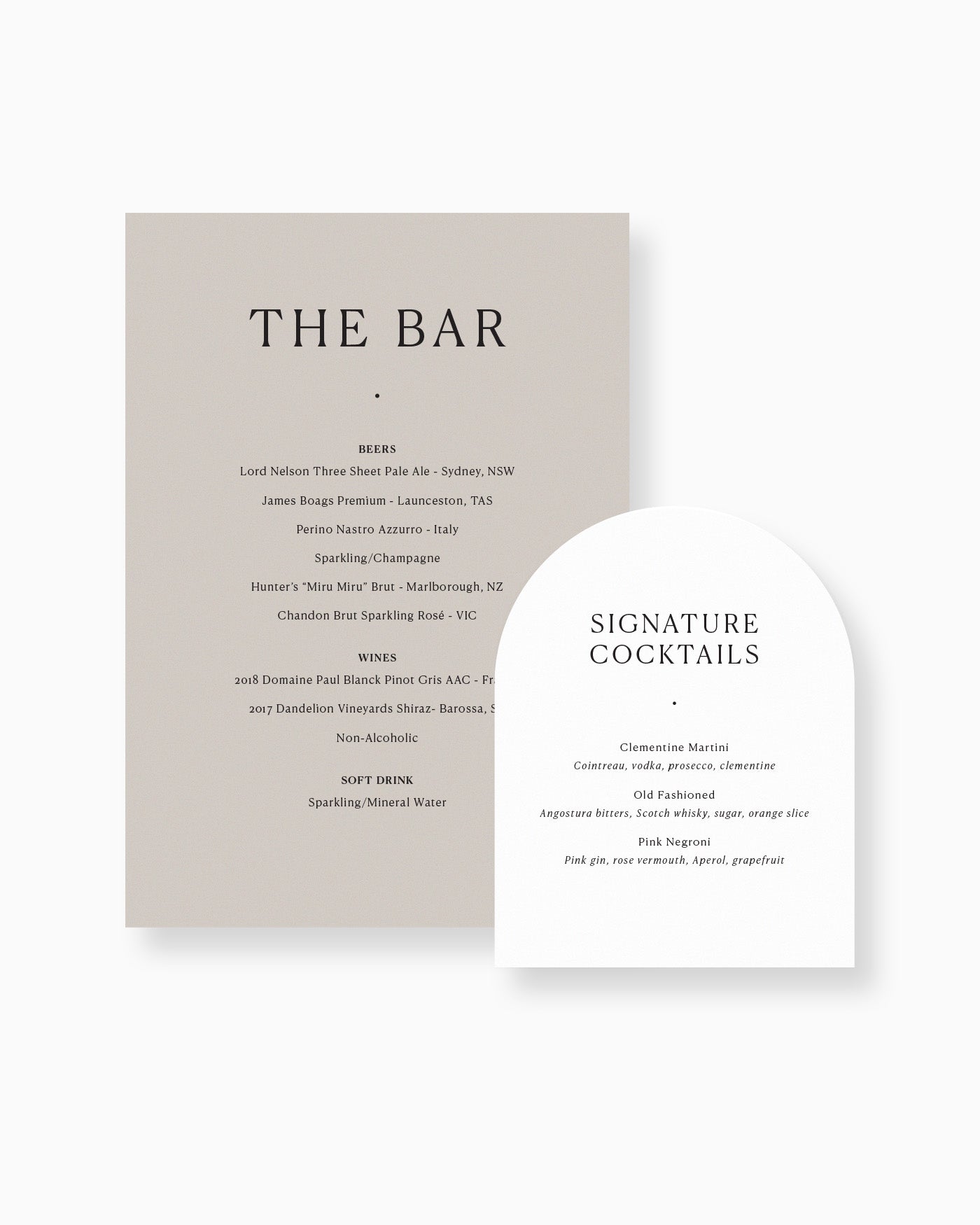 Available in printed card or foam board, our small signage includes table numbers, group menus, bar menus, gifts, guest book, photo booth or other A5 signage pieces you would like to display at your event.