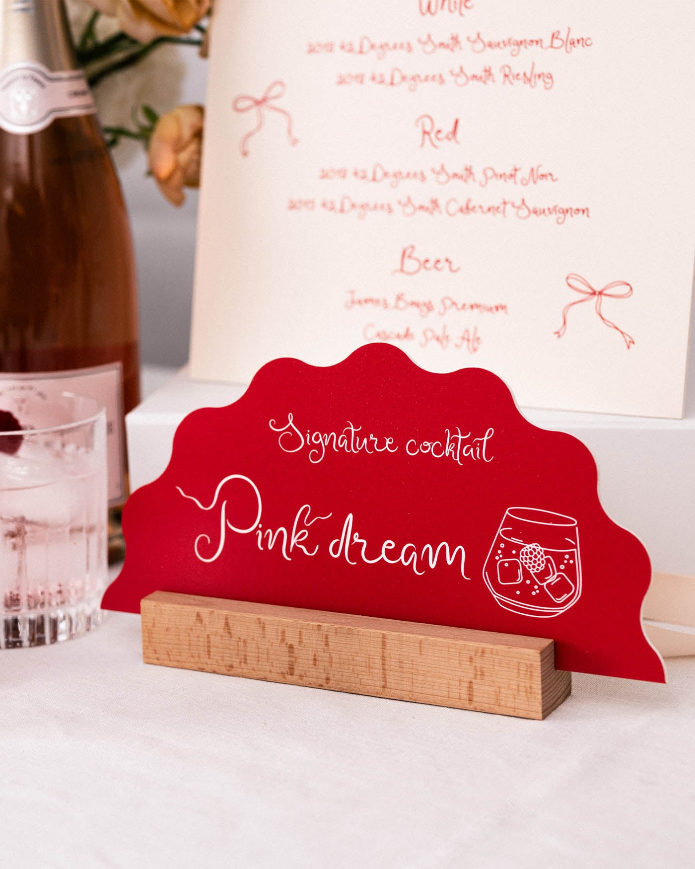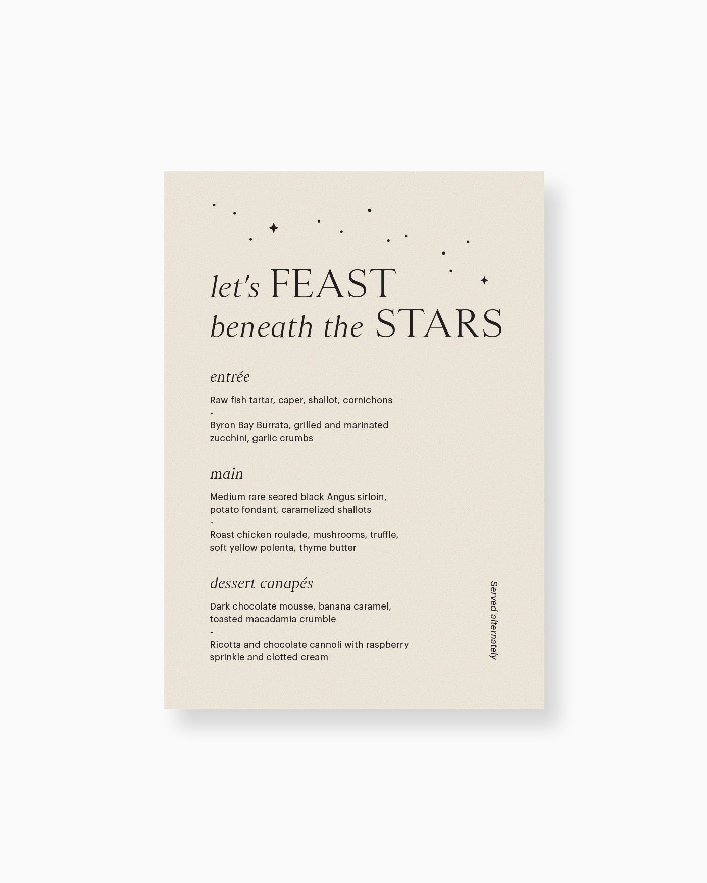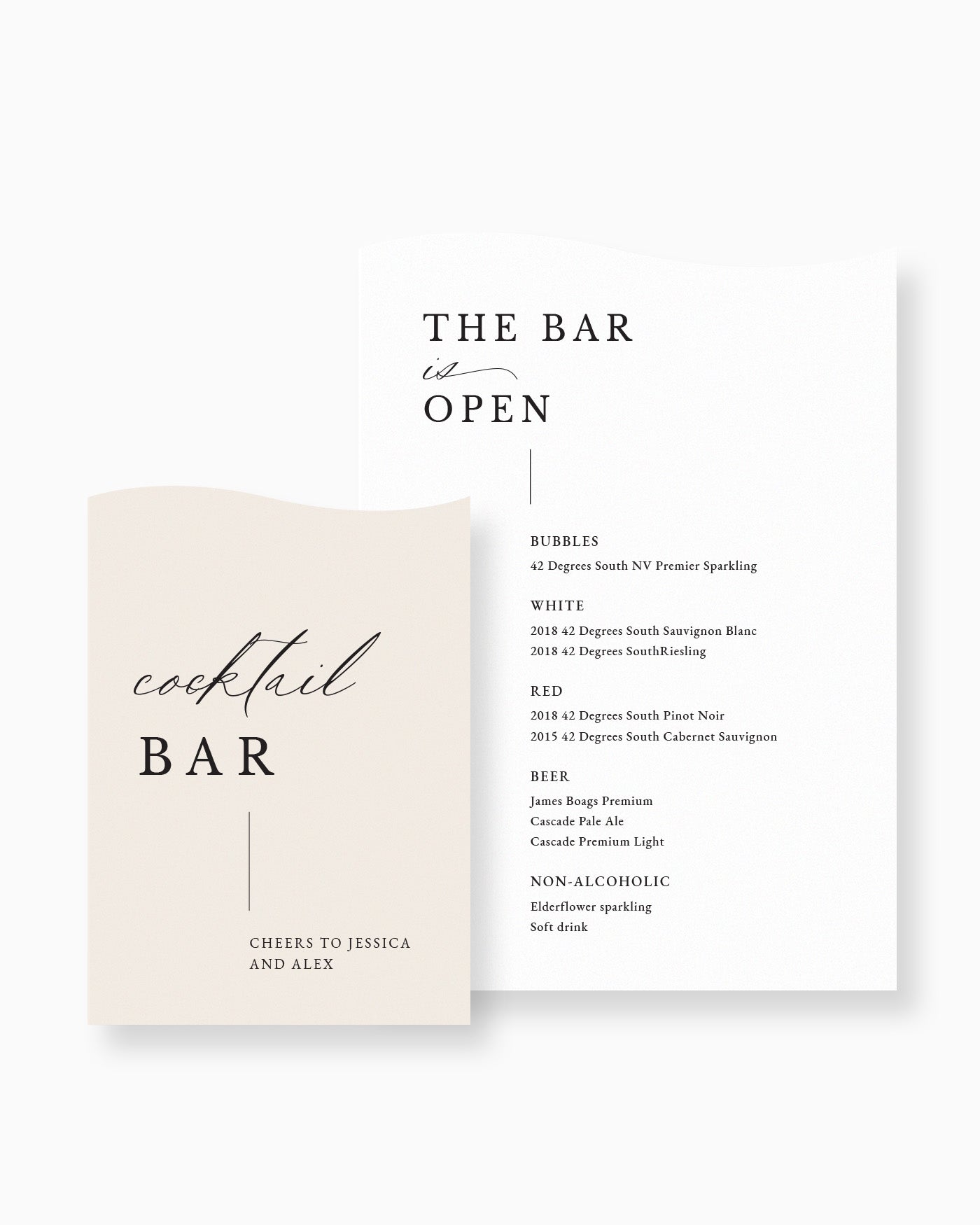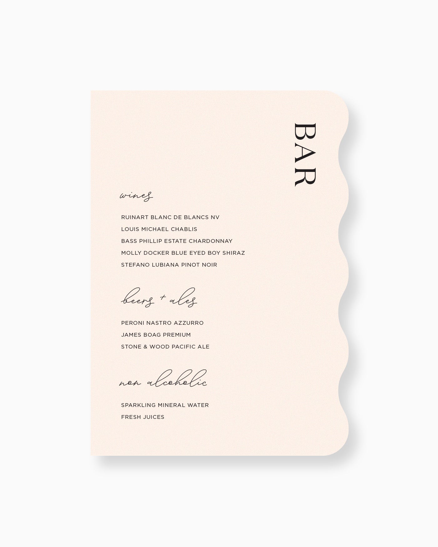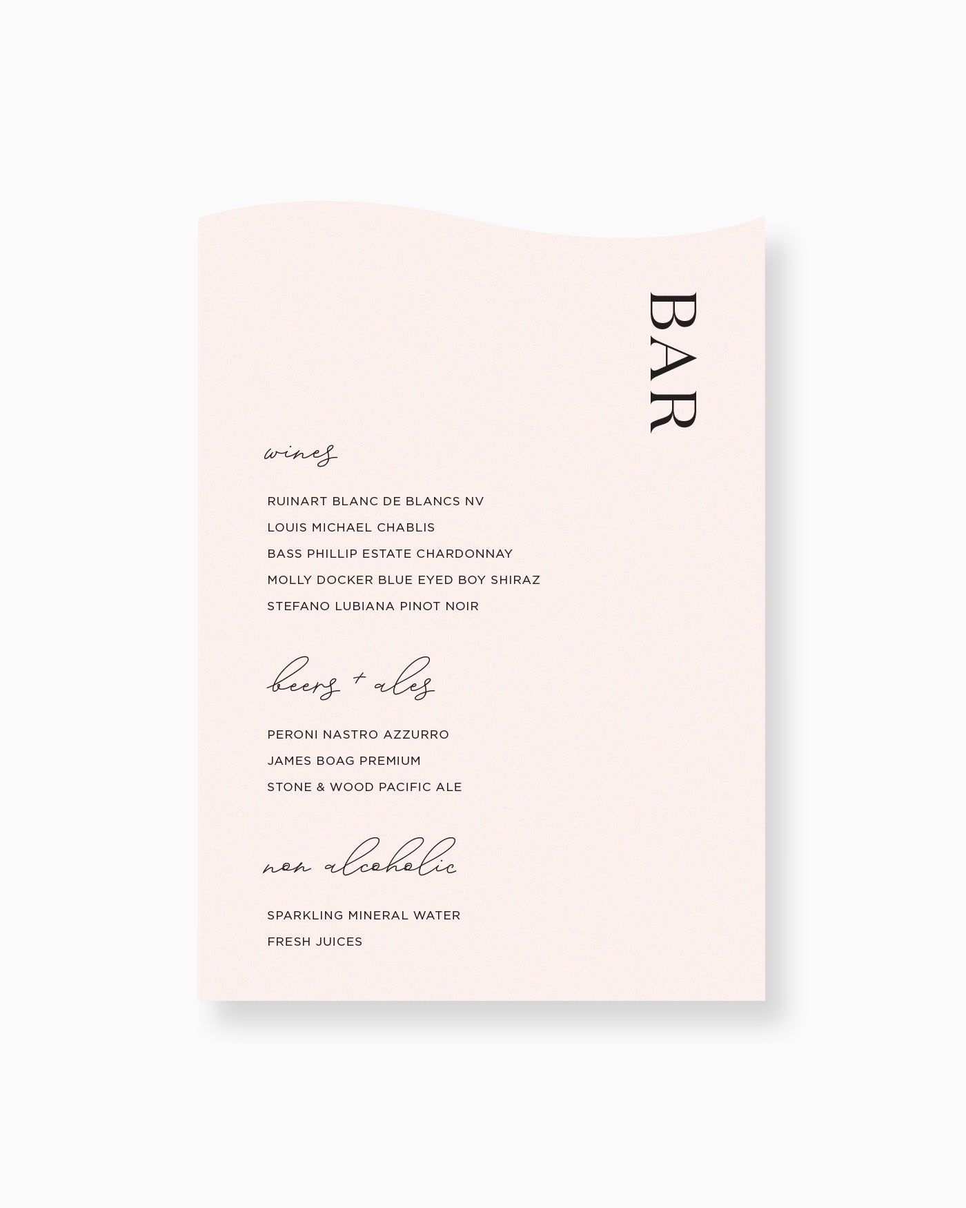 Available in printed card or foam board, our small signage includes table numbers, group menus, bar menus, gifts, guest book, photo booth or other A5 signage pieces you would like to display at your event.