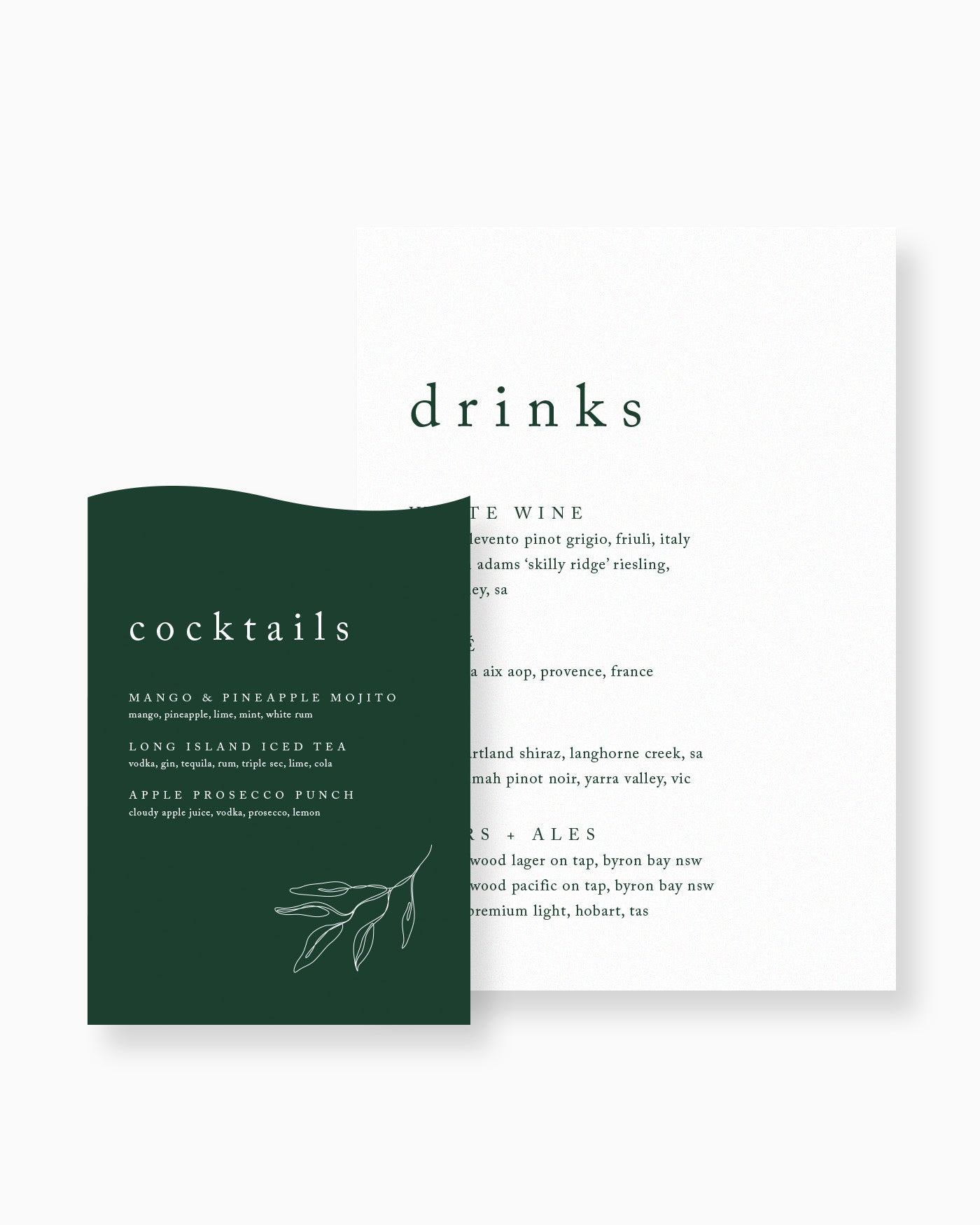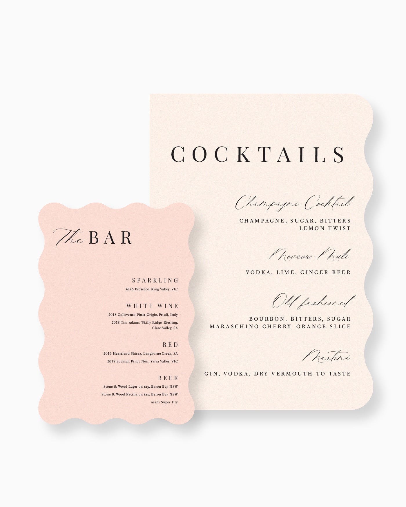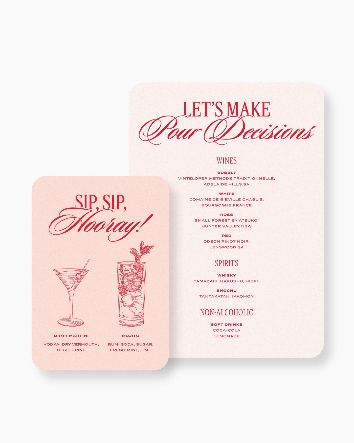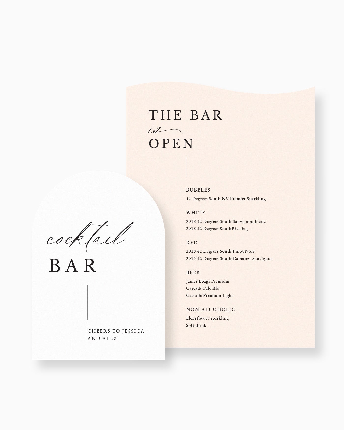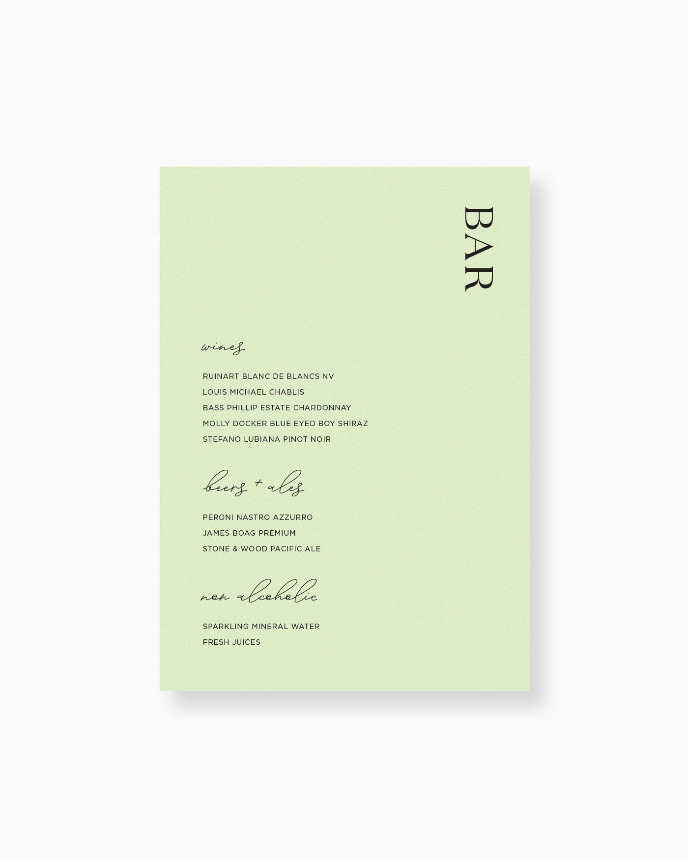 Available in printed card or foam board, our small signage includes table numbers, group menus, bar menus, gifts, guest book, photo booth or other A5 signage pieces you would like to display at your event.