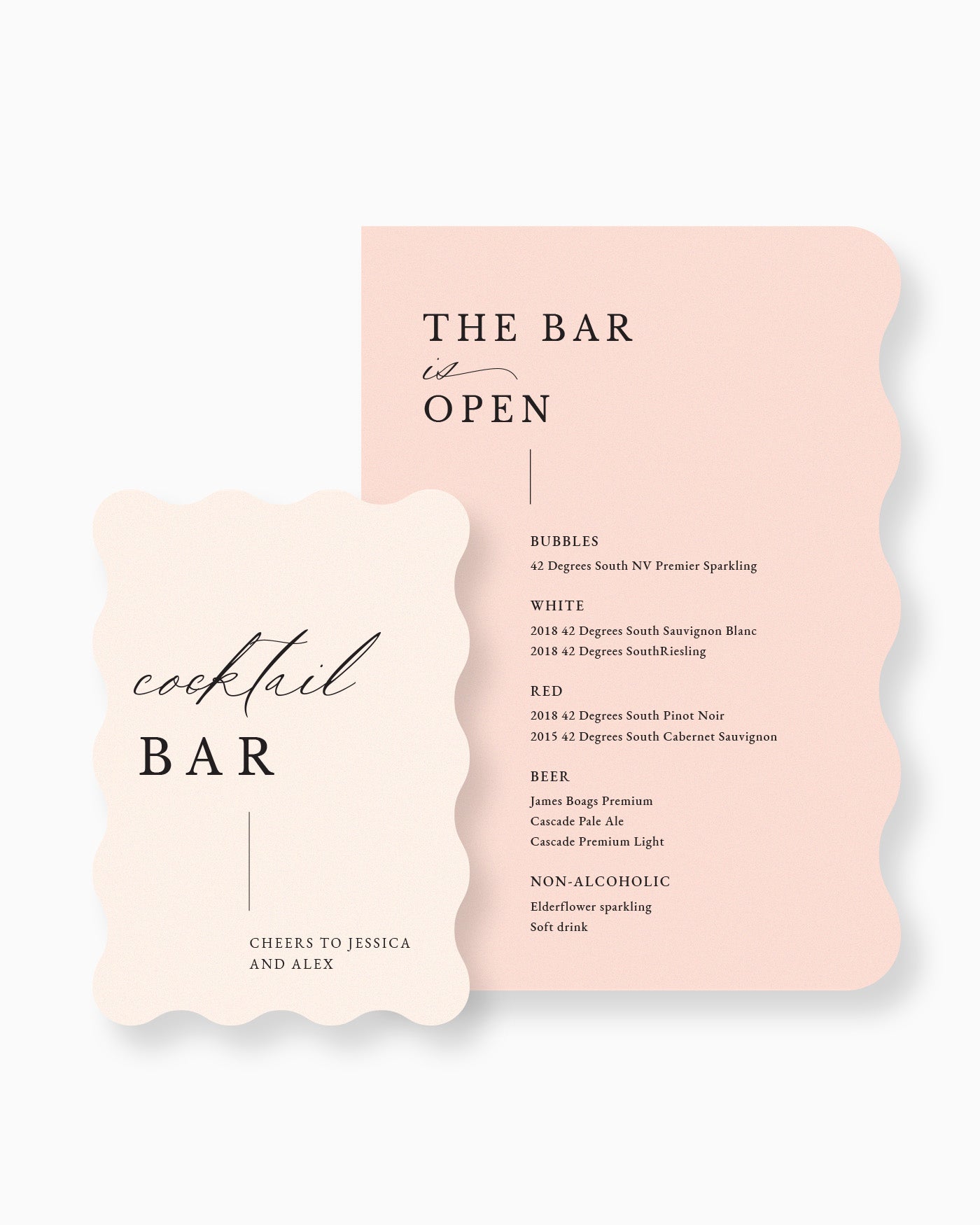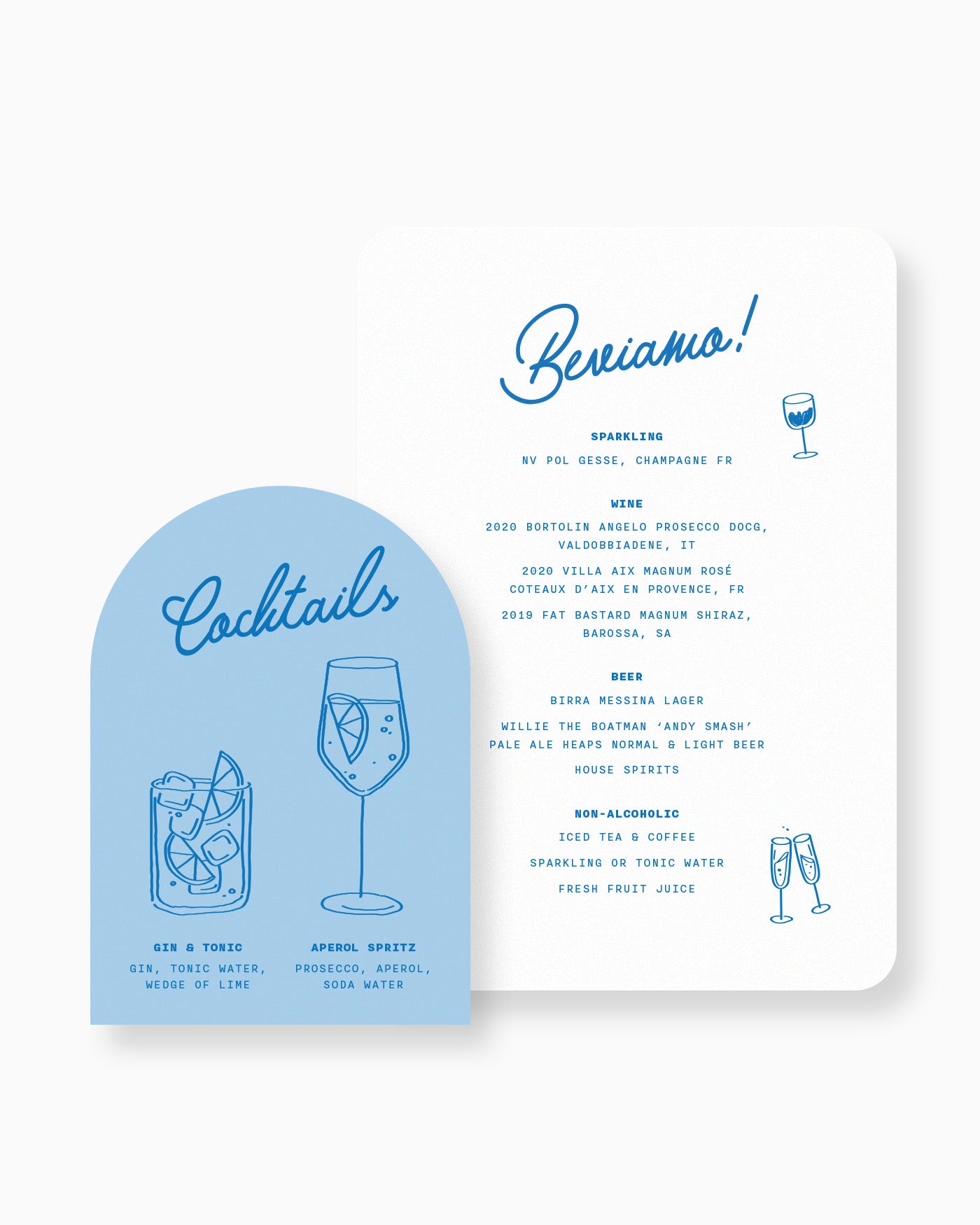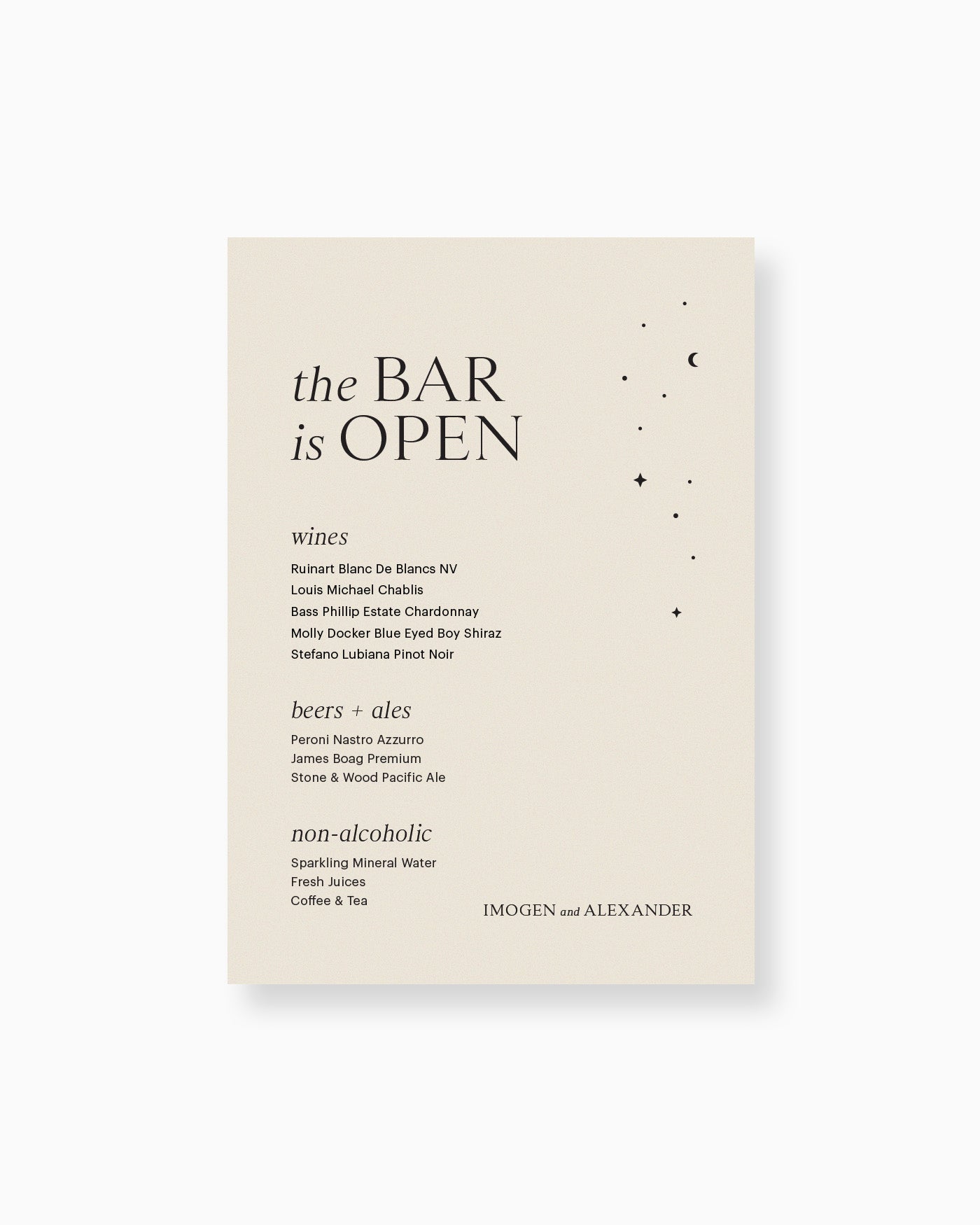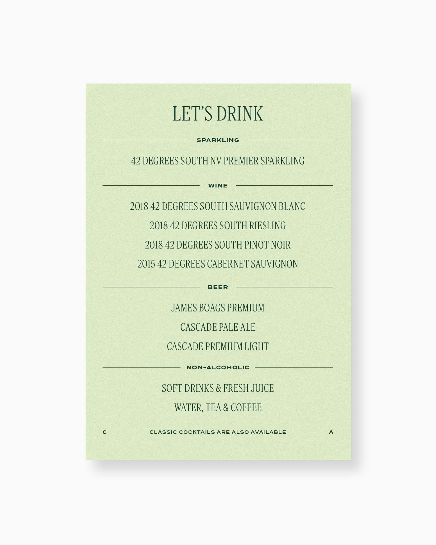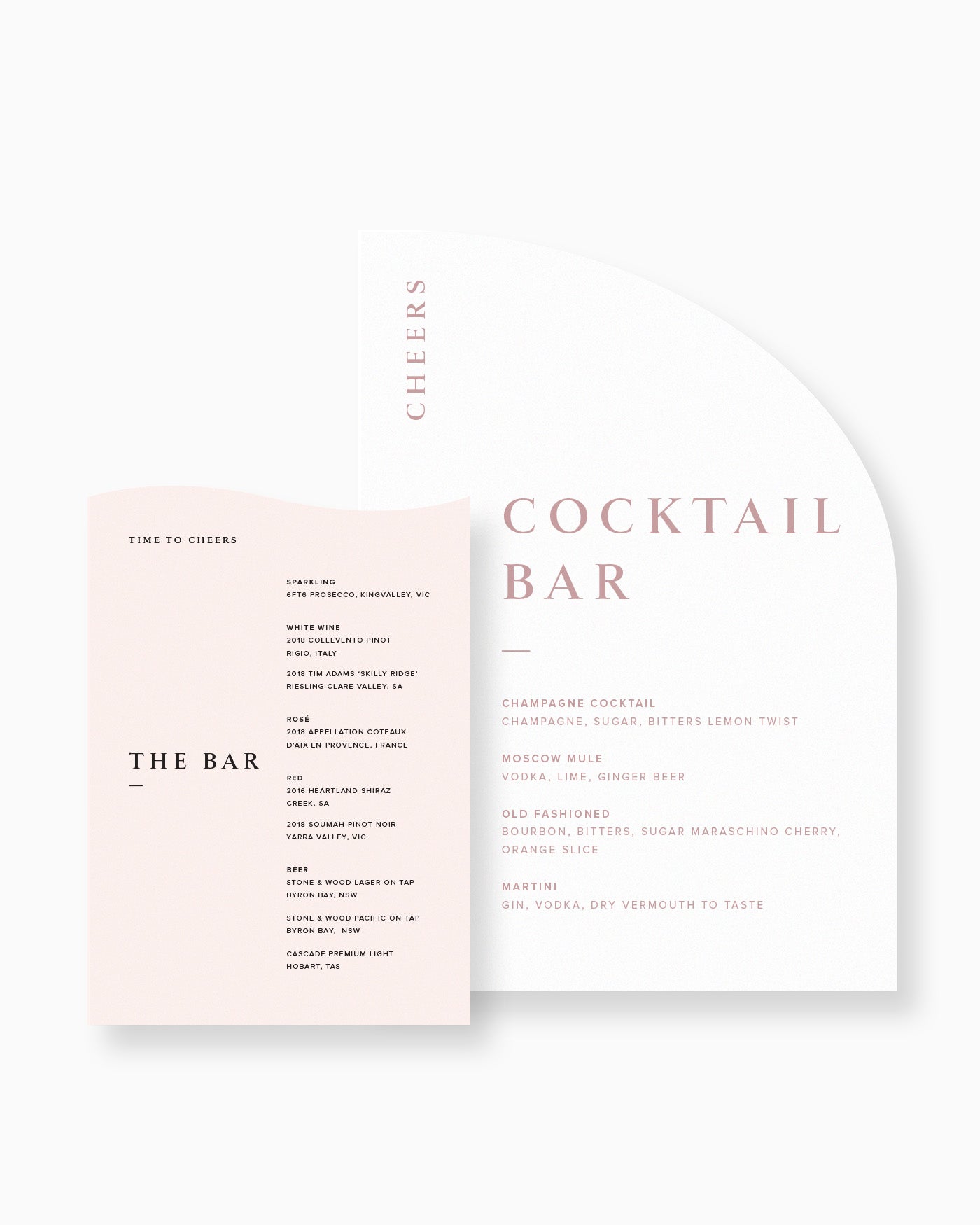 Available in printed card or foam board, our small signage includes table numbers, group menus, bar menus, gifts, guest book, photo booth or other A5 signage pieces you would like to display at your event.