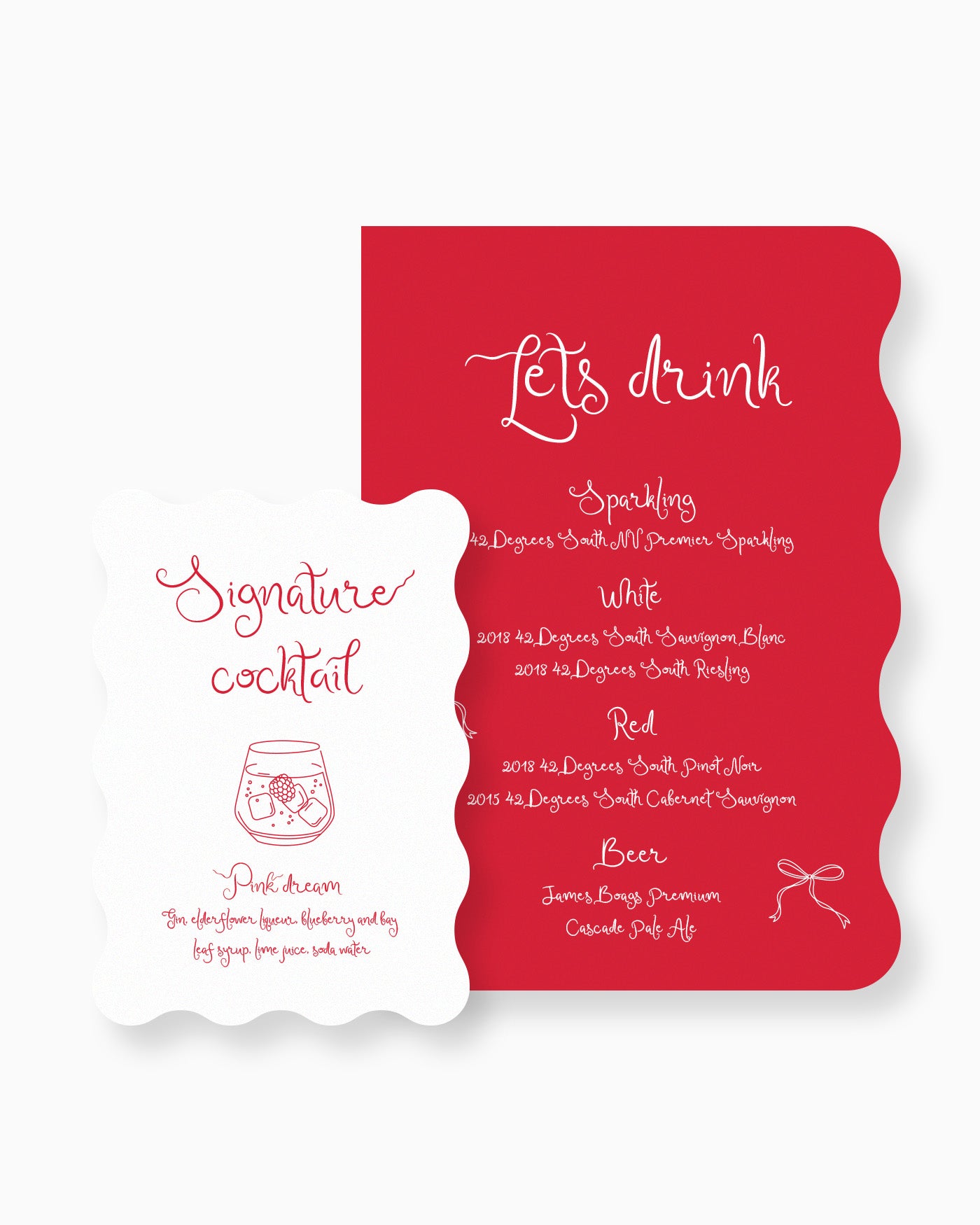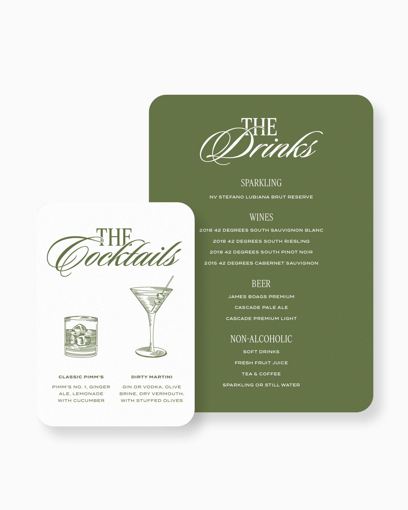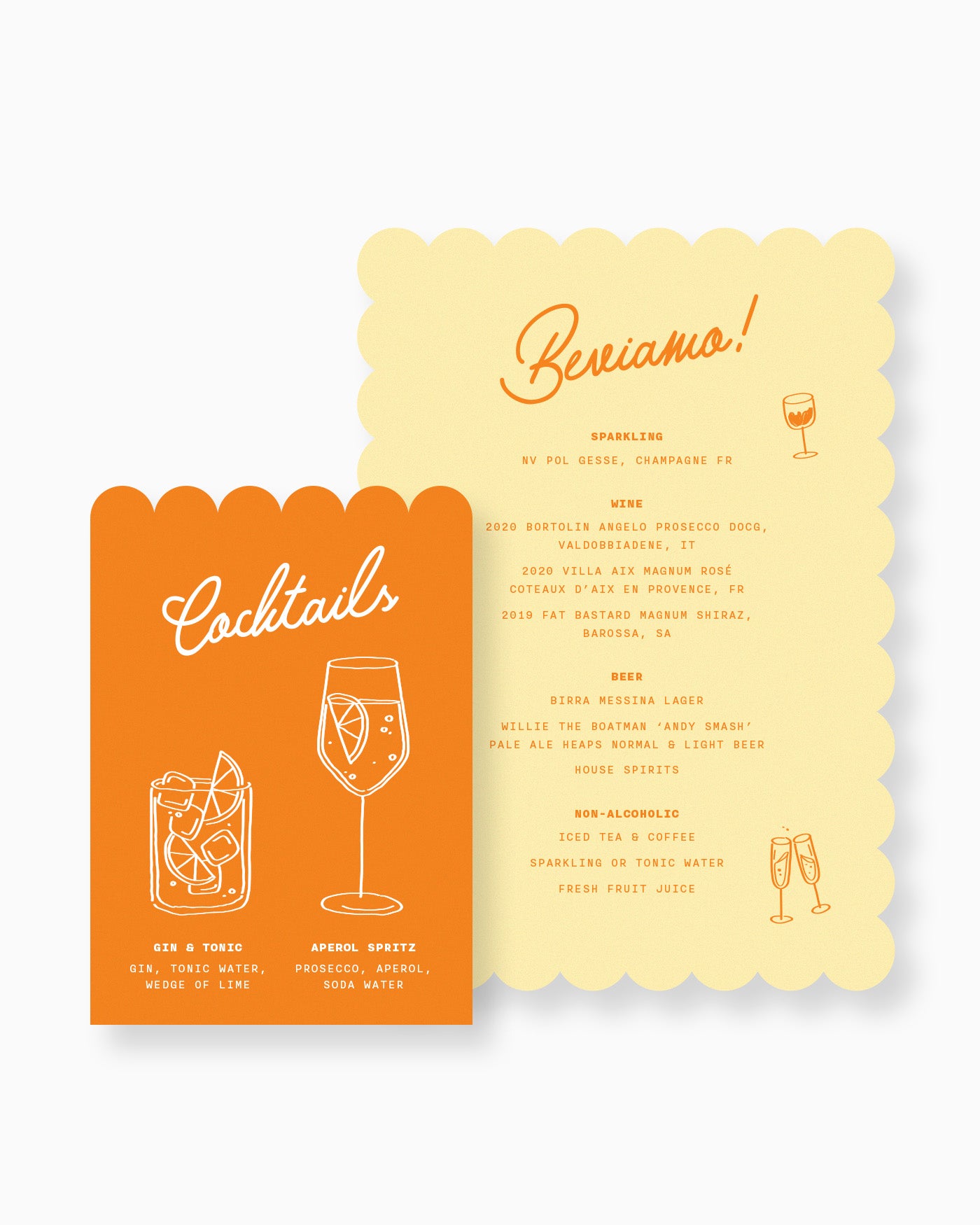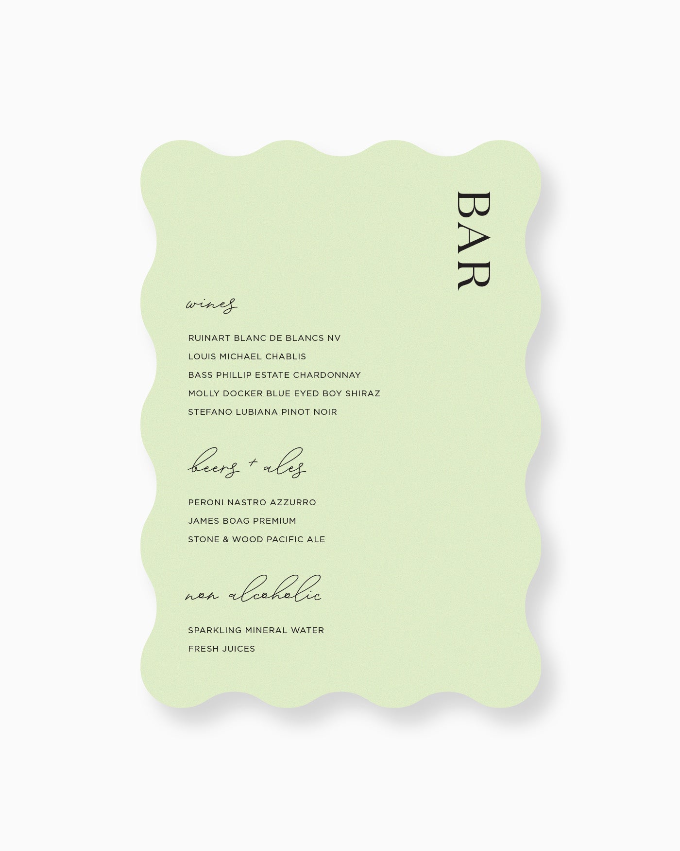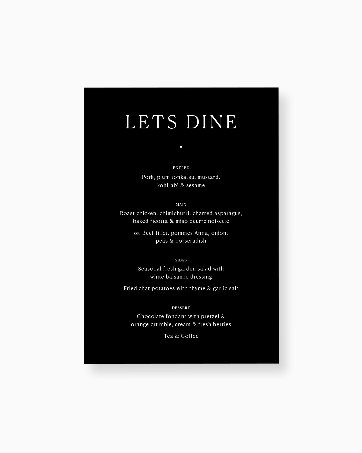 Available in printed card or foam board, our small signage includes table numbers, group menus, bar menus, gifts, guest book, photo booth or other A5 signage pieces you would like to display at your event.