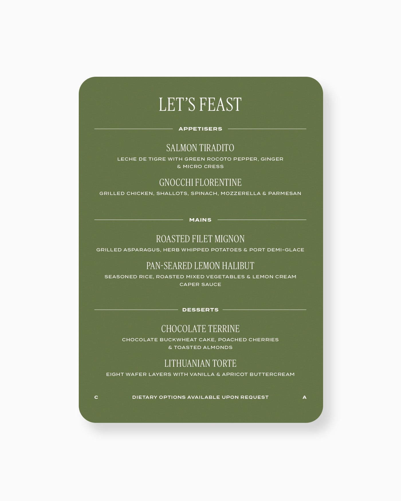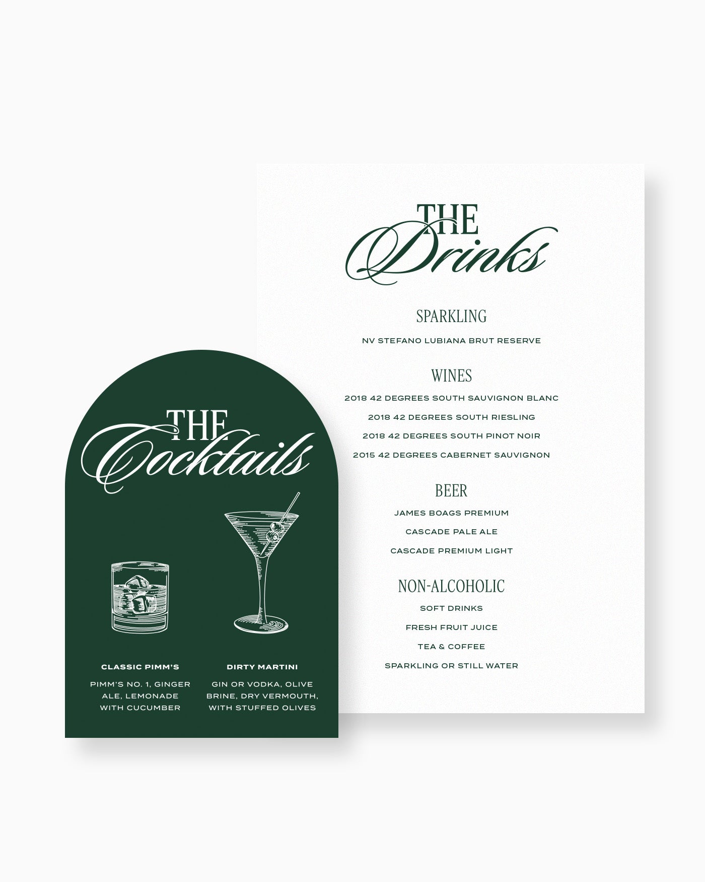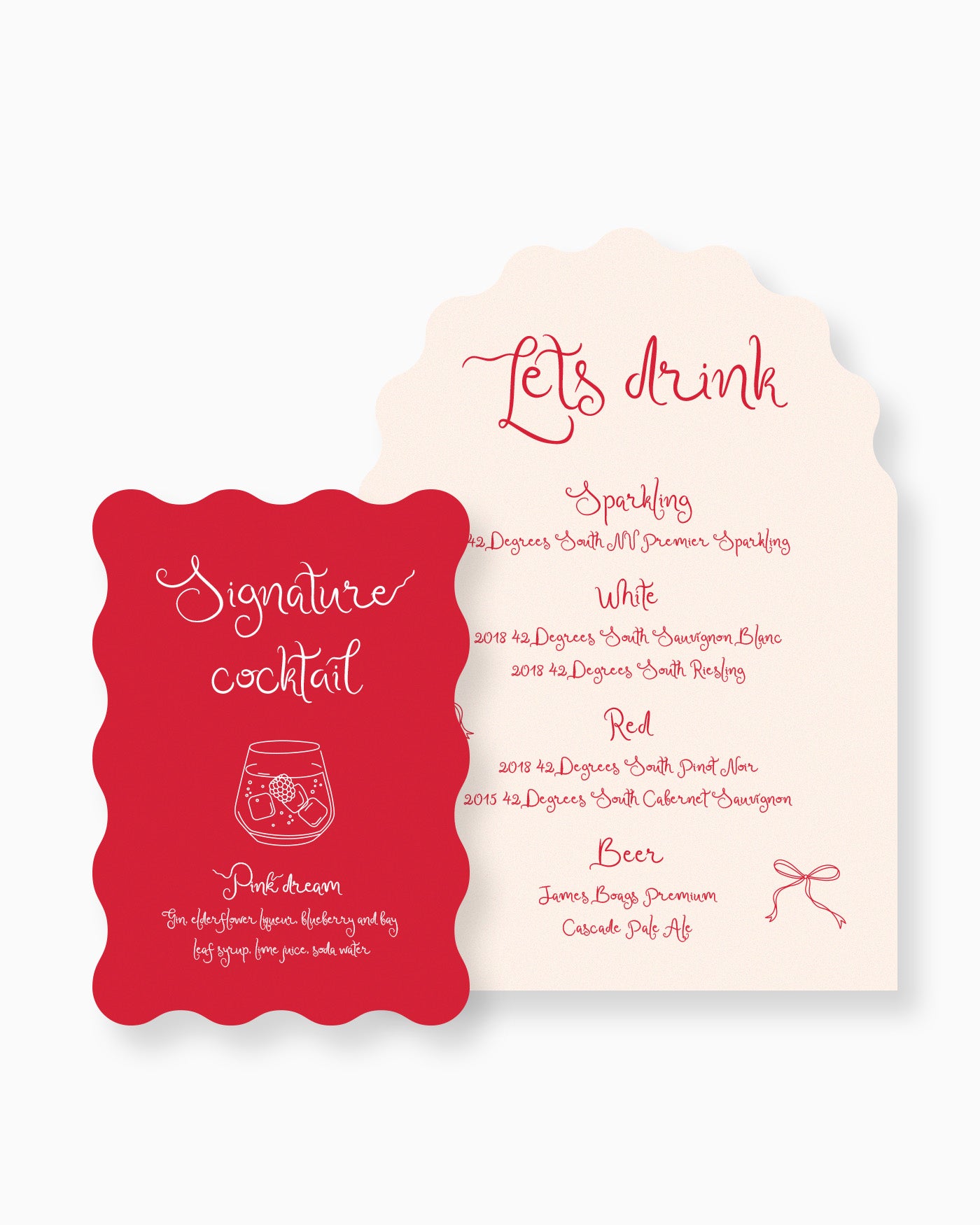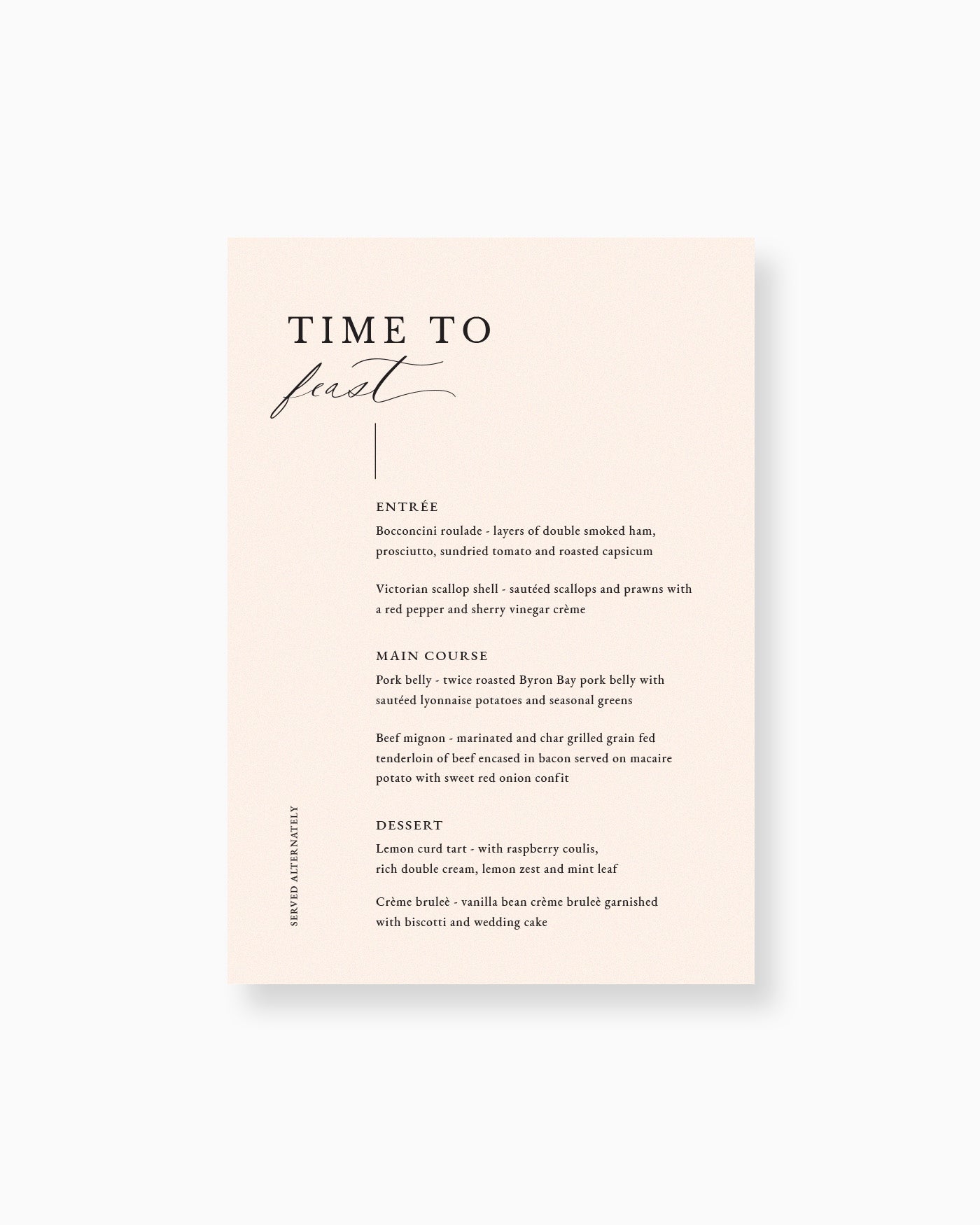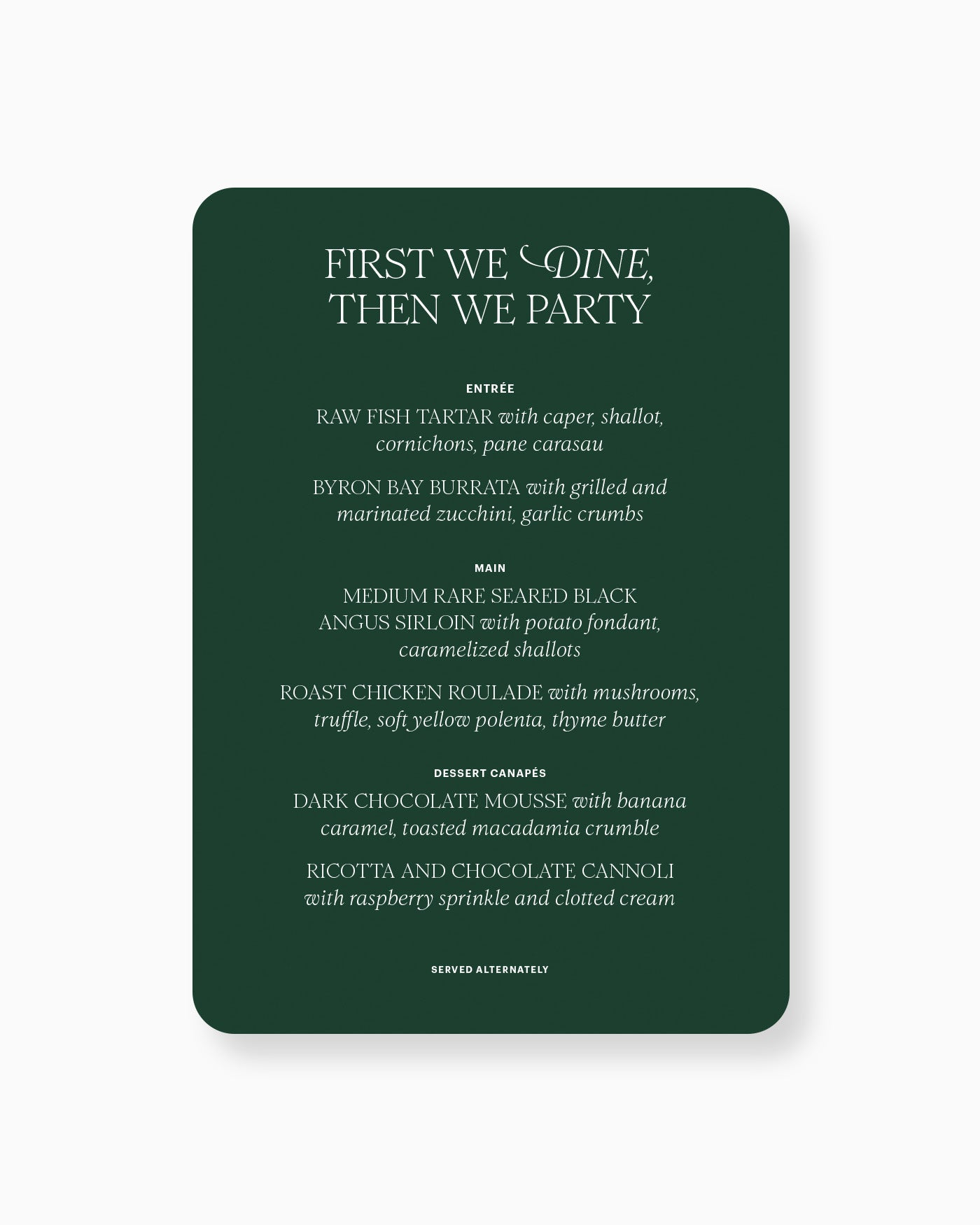 Available in printed card or foam board, our small signage includes table numbers, group menus, bar menus, gifts, guest book, photo booth or other A5 signage pieces you would like to display at your event.