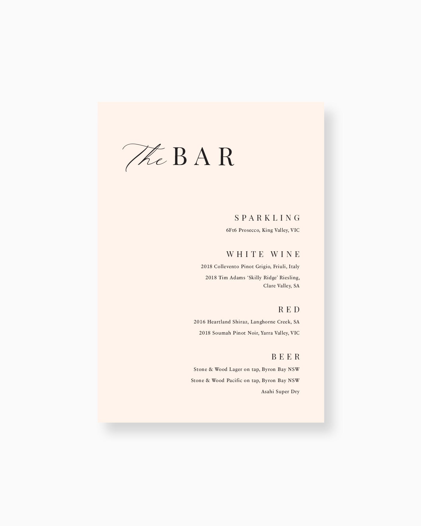 Available in printed card or foam board, our small signage includes table numbers, group menus, bar menus, gifts, guest book, photo booth or other A5 signage pieces you would like to display at your event.