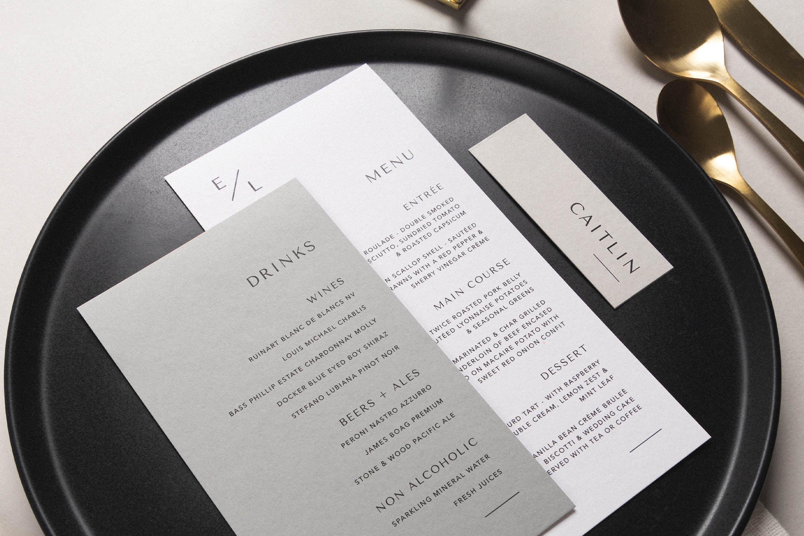 Narrative is a contemporary collection that pairs modern sans serifs with a personalised monogram. This collection is for those couples who are looking for a suite that will resonate with their own glamorous event.