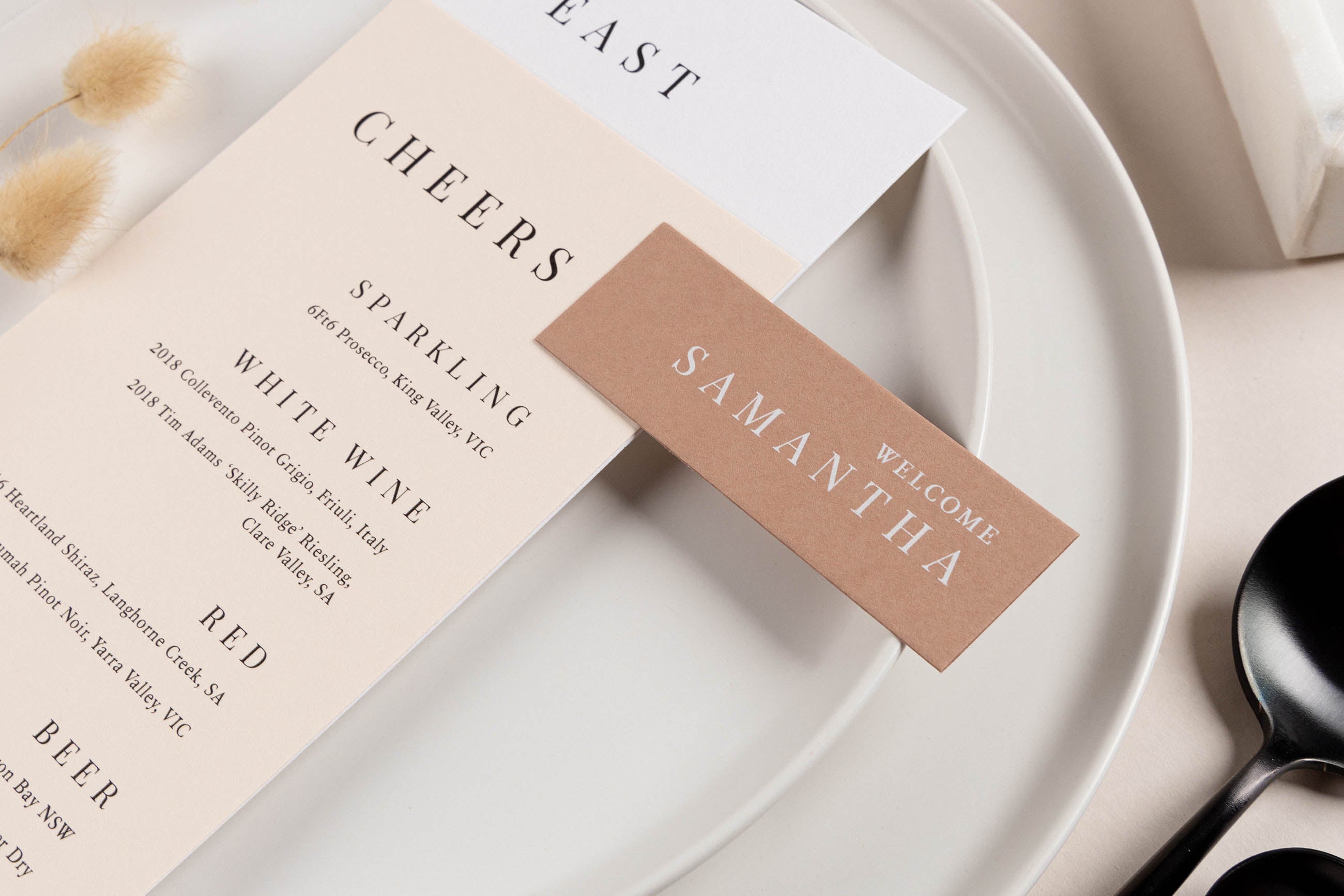 Soleil pairs classic serifs with handwritten elements as a new take on the traditional wedding stationery suite. These time-honoured fonts combine to present a collection that is for couples who are planning a formal event, but desire a modern twist.