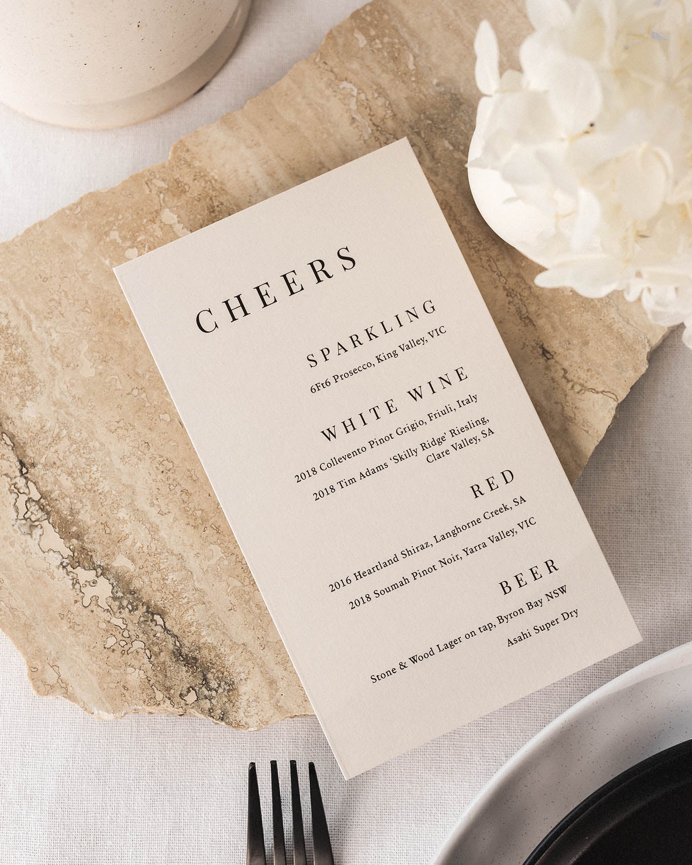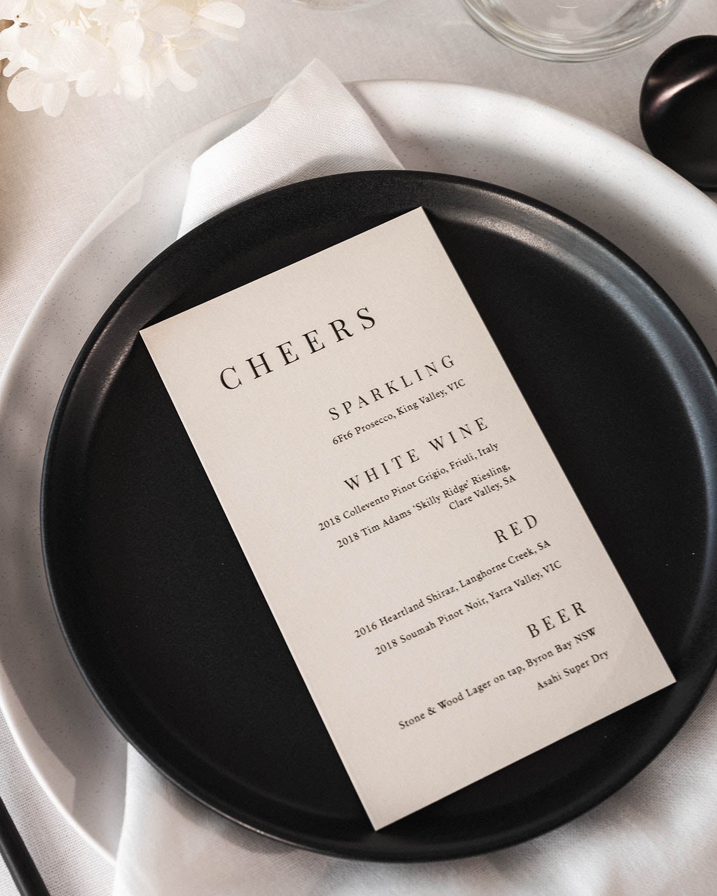 Wedding drinks menus by Peppermint Press