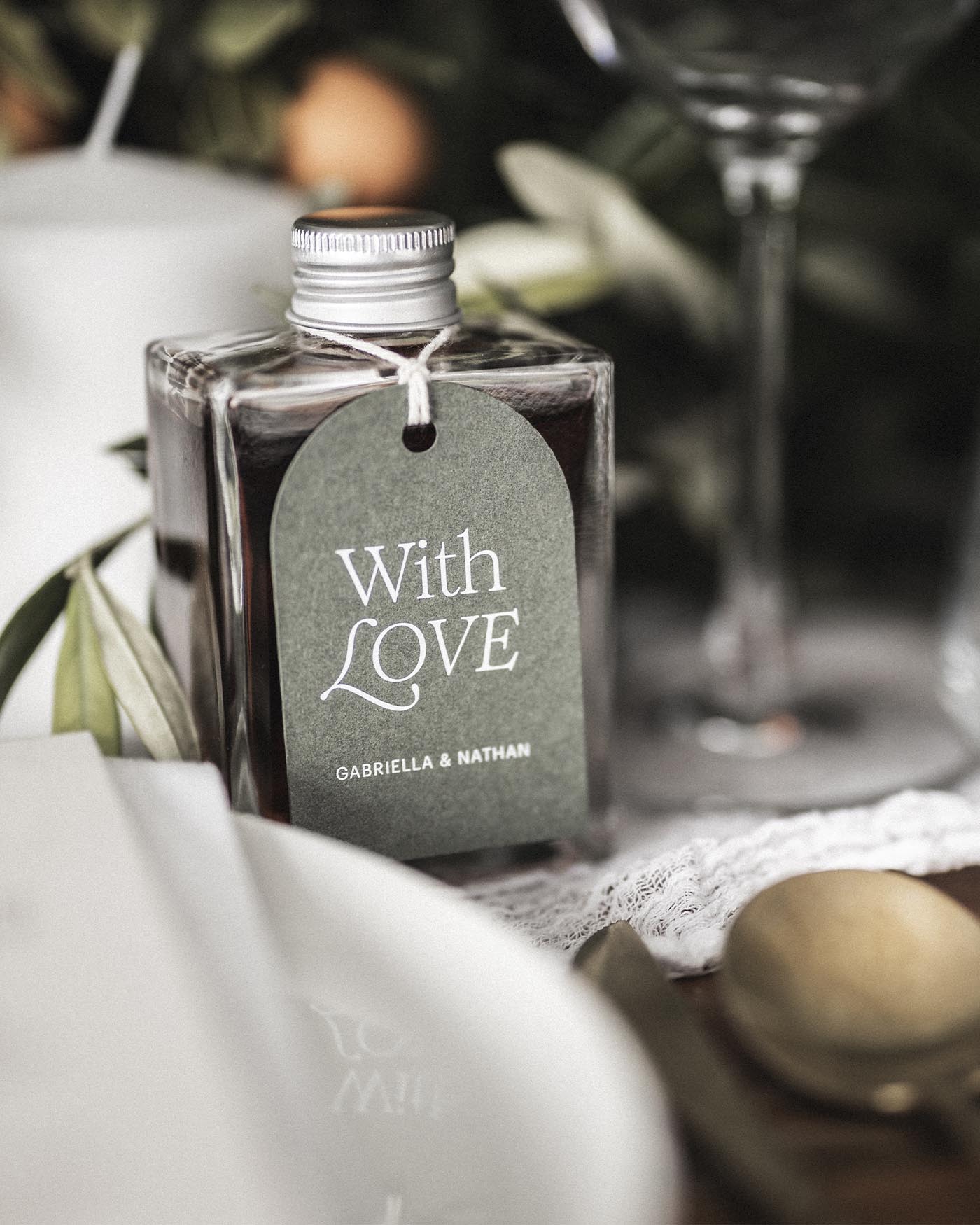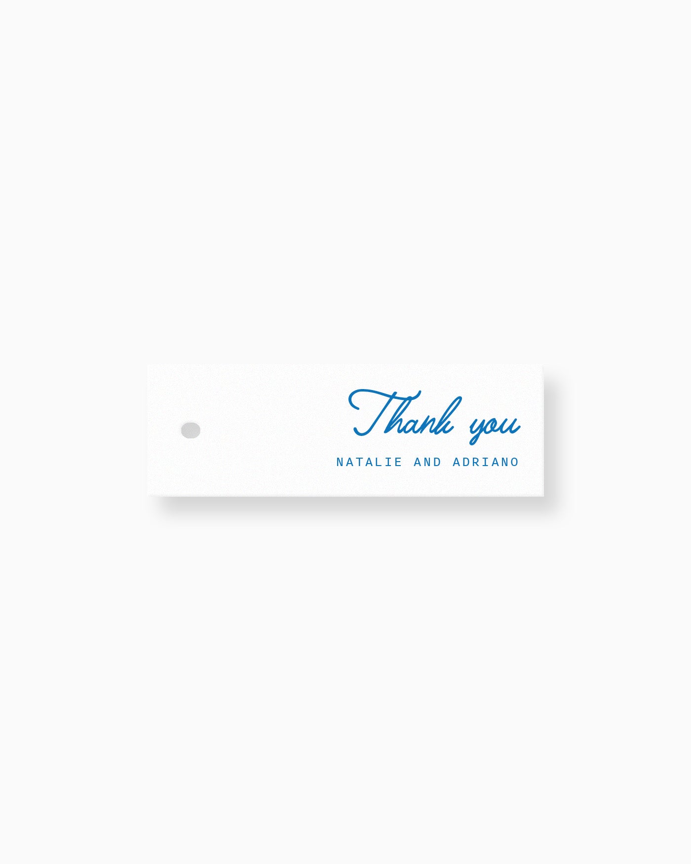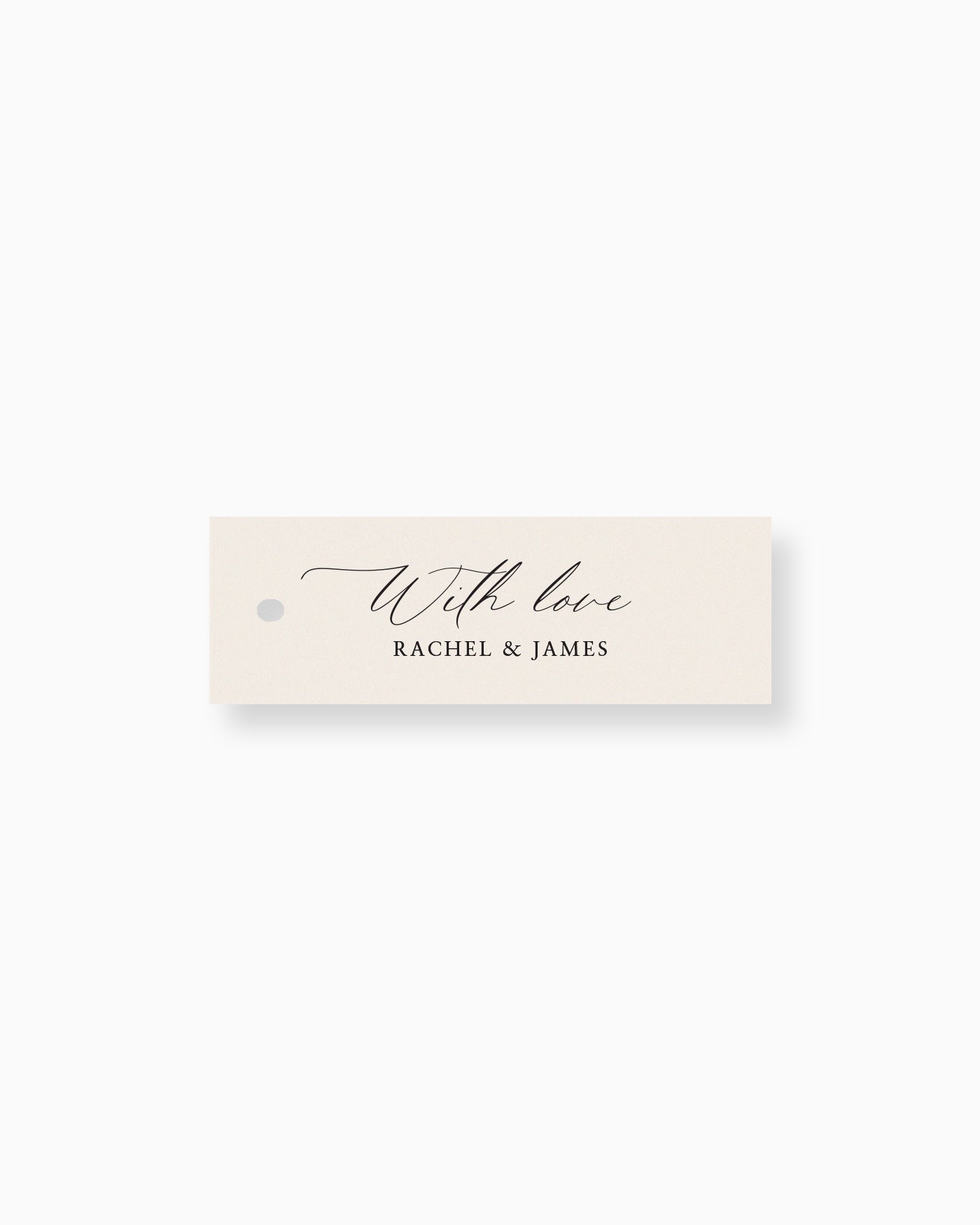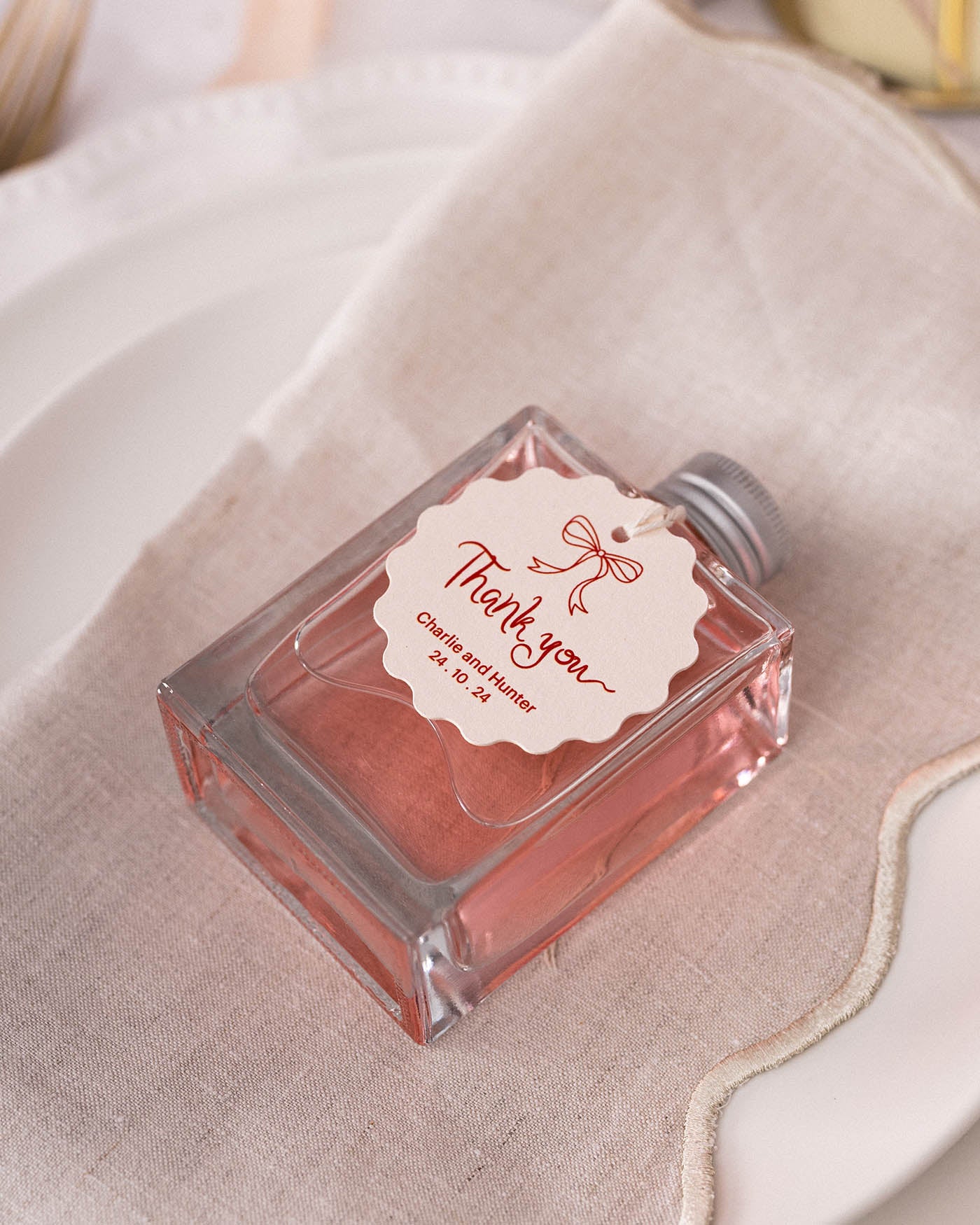 Peppermint Press favour tags include a hole and are easily attached with any string or twine that fits the theme of your favours. You could also use a thin ribbon of a colour that seamlessly matches your wedding aesthetic.