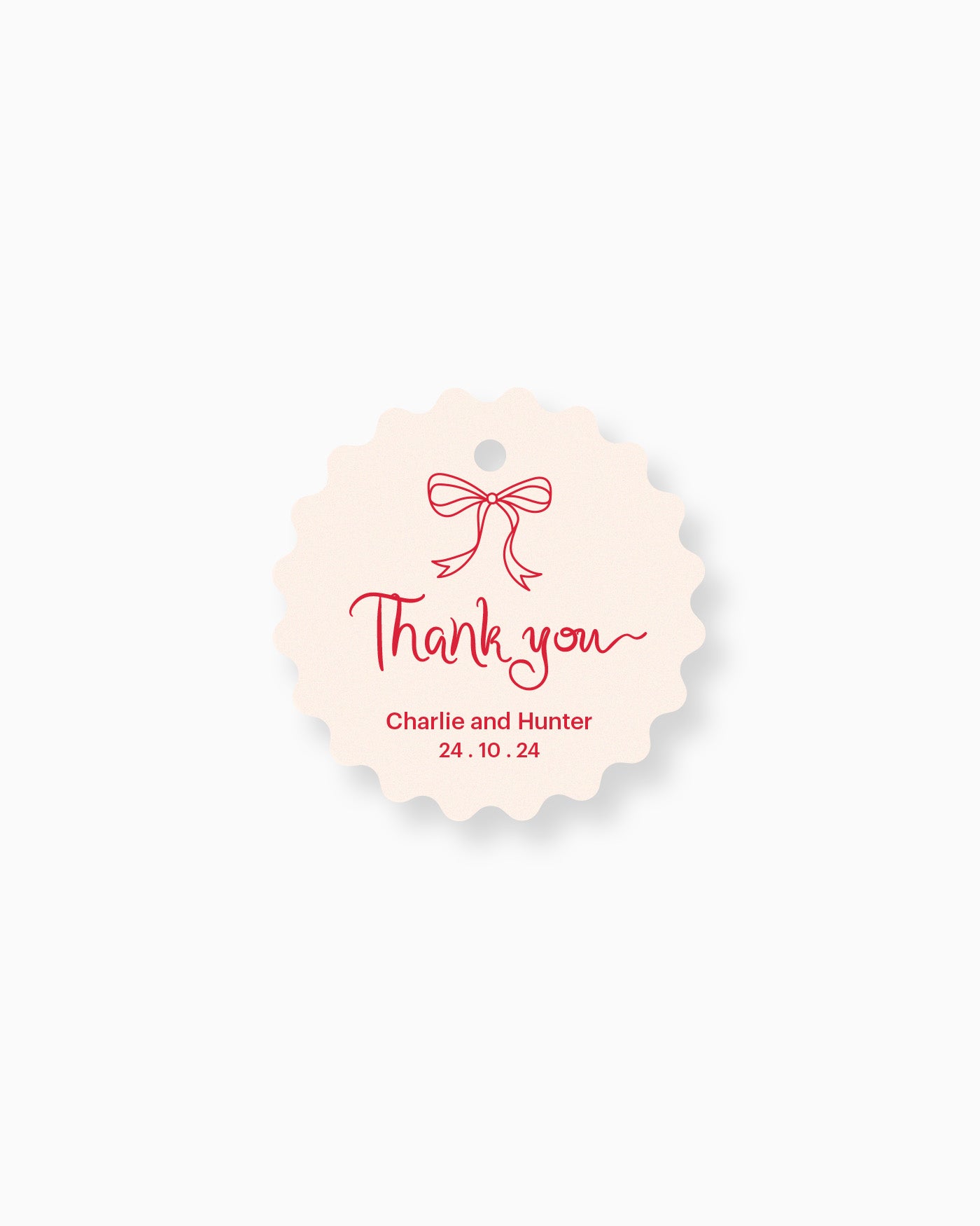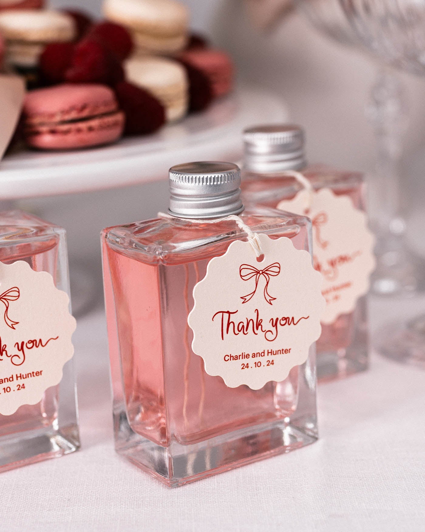 Favour tags typically feature the couple's names, the wedding date, perhaps a thank-you message, or a short note expressing appreciation to guests.