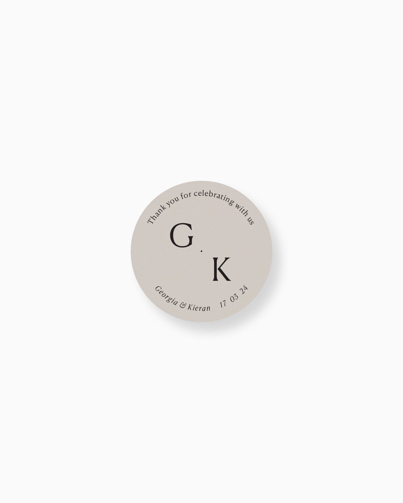 With the Georgia Favour Labels, you can elevate your wedding favours with a touch of sophistication. The labels come in square, rectangular, and circle options and can be customised with your names and event colours.
