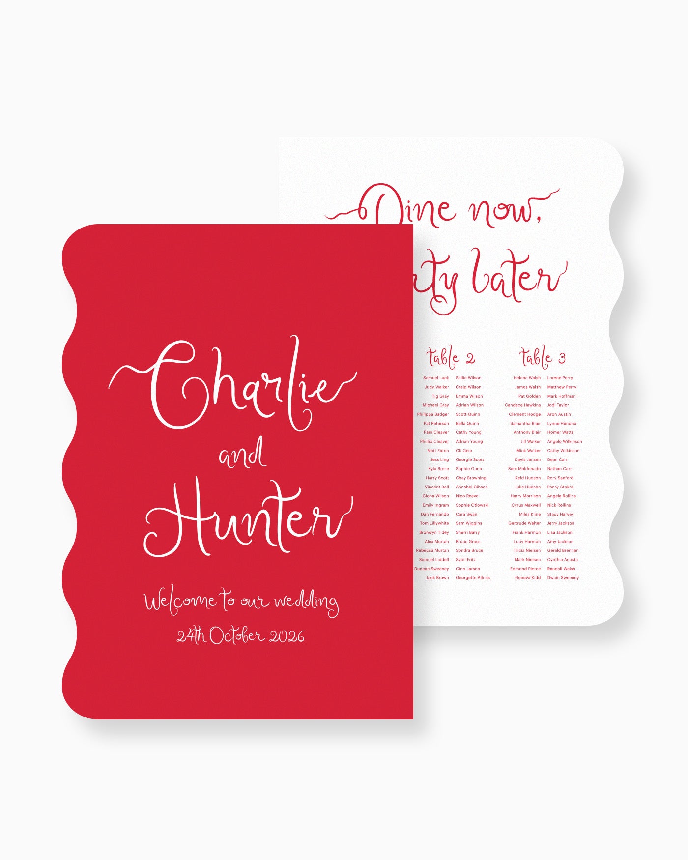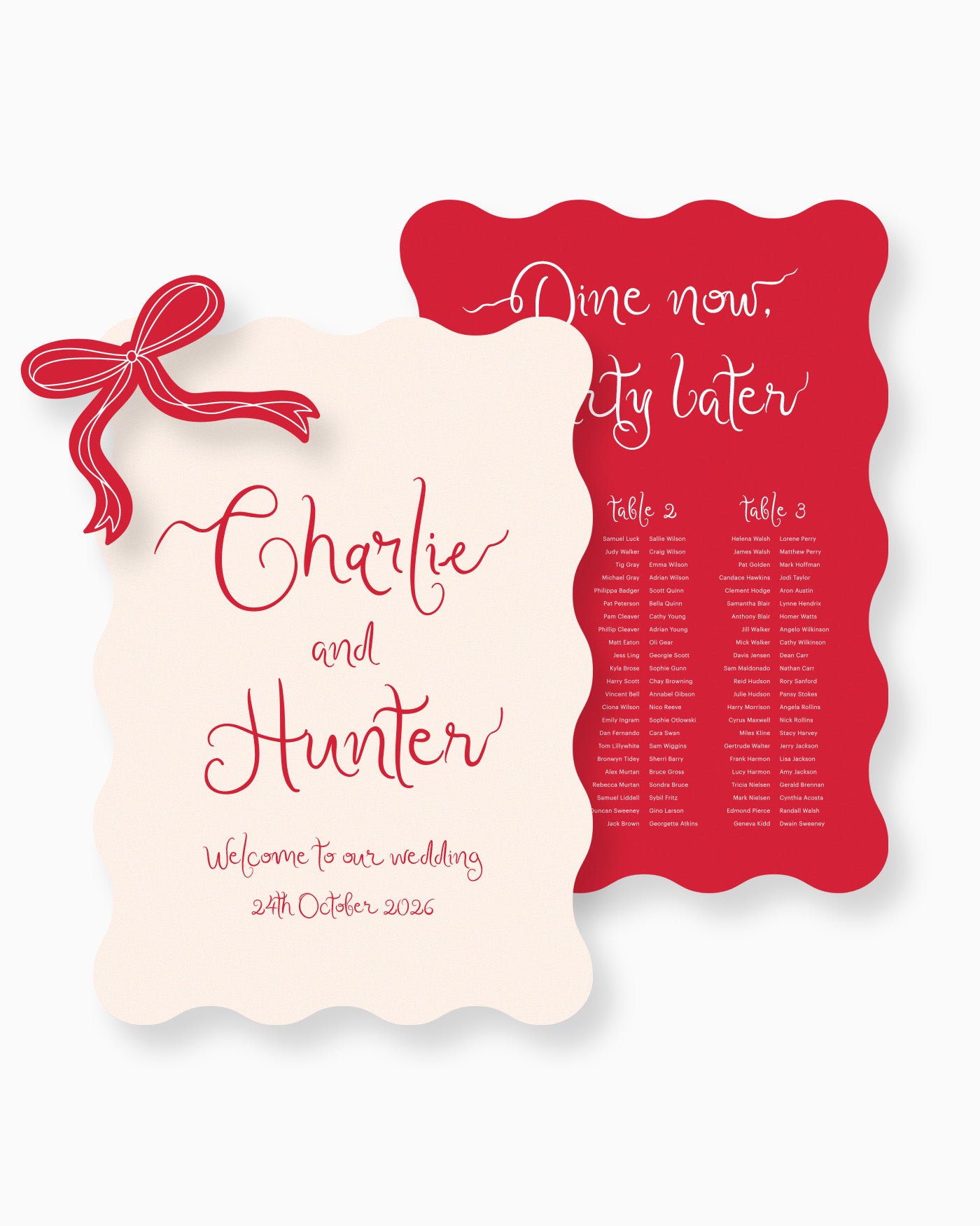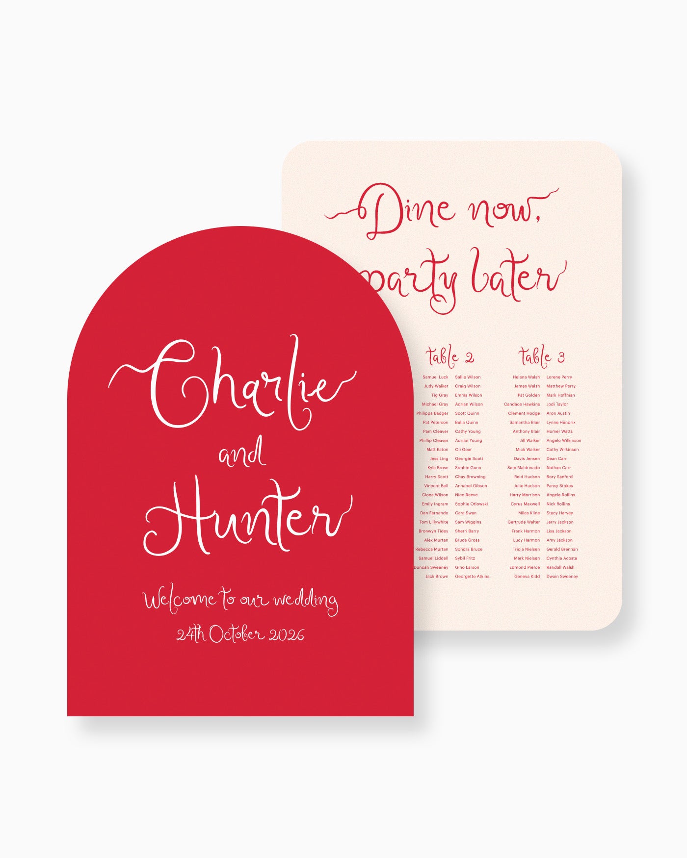 Elevate your event with the Charlie Large Signage Package. This package includes options for the Welcome Sign and Seating Chart to add sophistication and ease to your event planning. Choose from a variety of sizes to fit your event space and customise the Seating Chart layout to your preference.