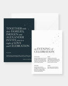 The Luna two card package includes the Wedding Invitation with a premium white envelope, as well as one enclosure card.