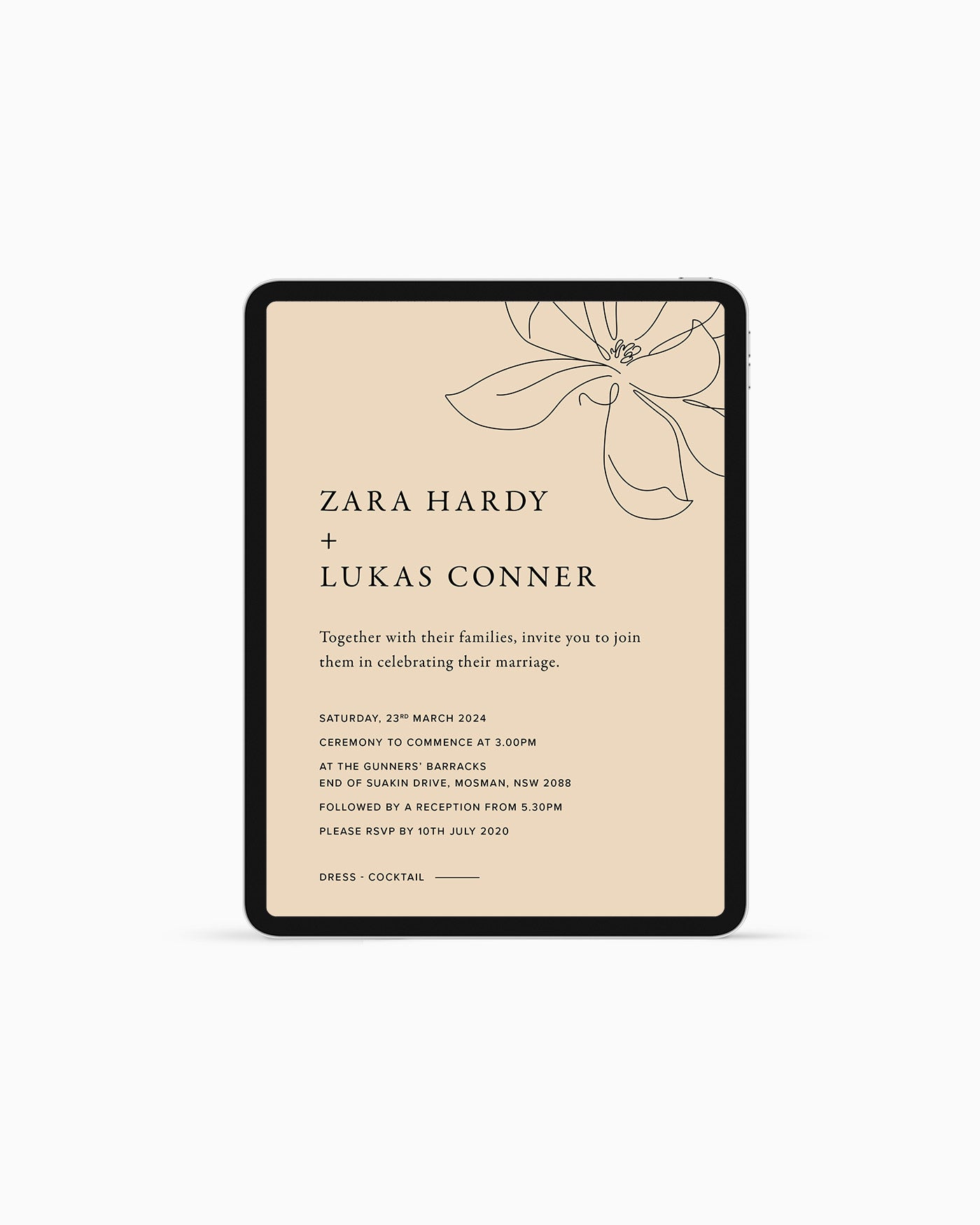 The Magnolia eInvitation is designed for emailing or messaging to your guests. You will be provided with a jpeg of your eSave the Date ready for you to send to your family and friends via email or text message.
