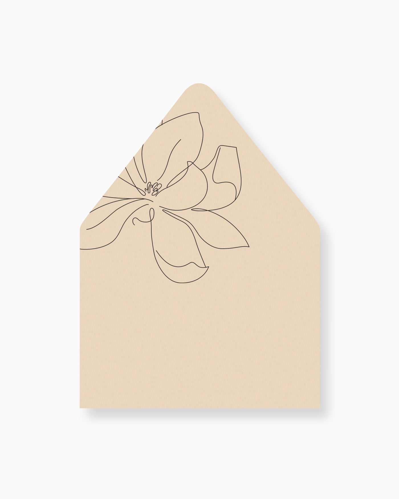 Add an extra layer of excitement to your wedding invitations with our Magnolia Envelope Liners. Our liners feature a beautiful magnolia pattern that will bring a unique and stylish look to your wedding stationery.