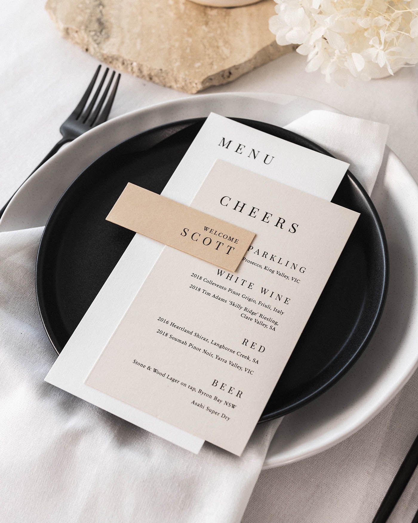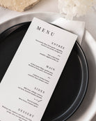 The Soleil Menu Package includes the menu, drinks menu and place card to provide everything you need to set your guests place at your event.