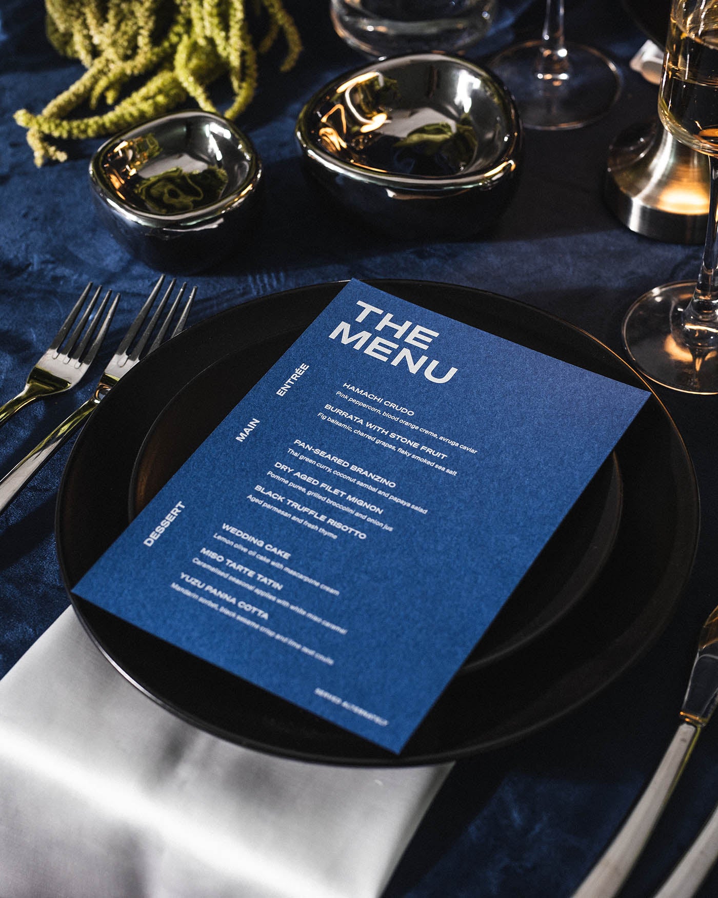 Perfect for individual place settings, this A5 menu can be personalised with your event's food selections.