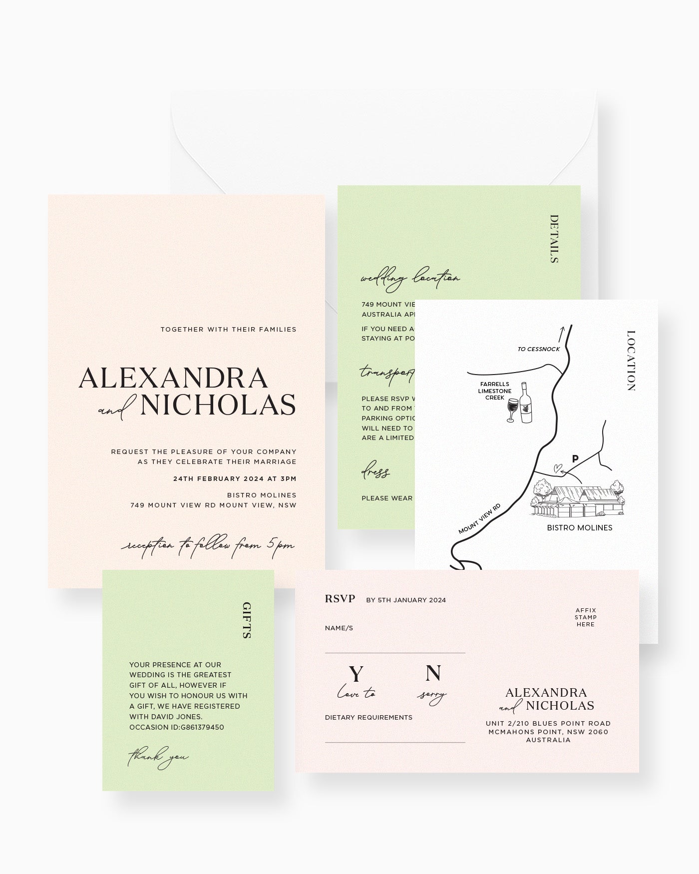 Style your event flawlessly with a full collection of invitations, on the day pieces and more.