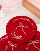 Printed on premium card stock, these coasters provide a unique and elegant alternative to standard place cards, adding a touch of refinement to your guests' dining experience.