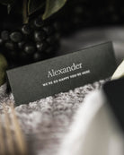 Cut and scored to sit up at your guests seating arrangement, these place cards provide an easy way for your guests to find their place at their table.