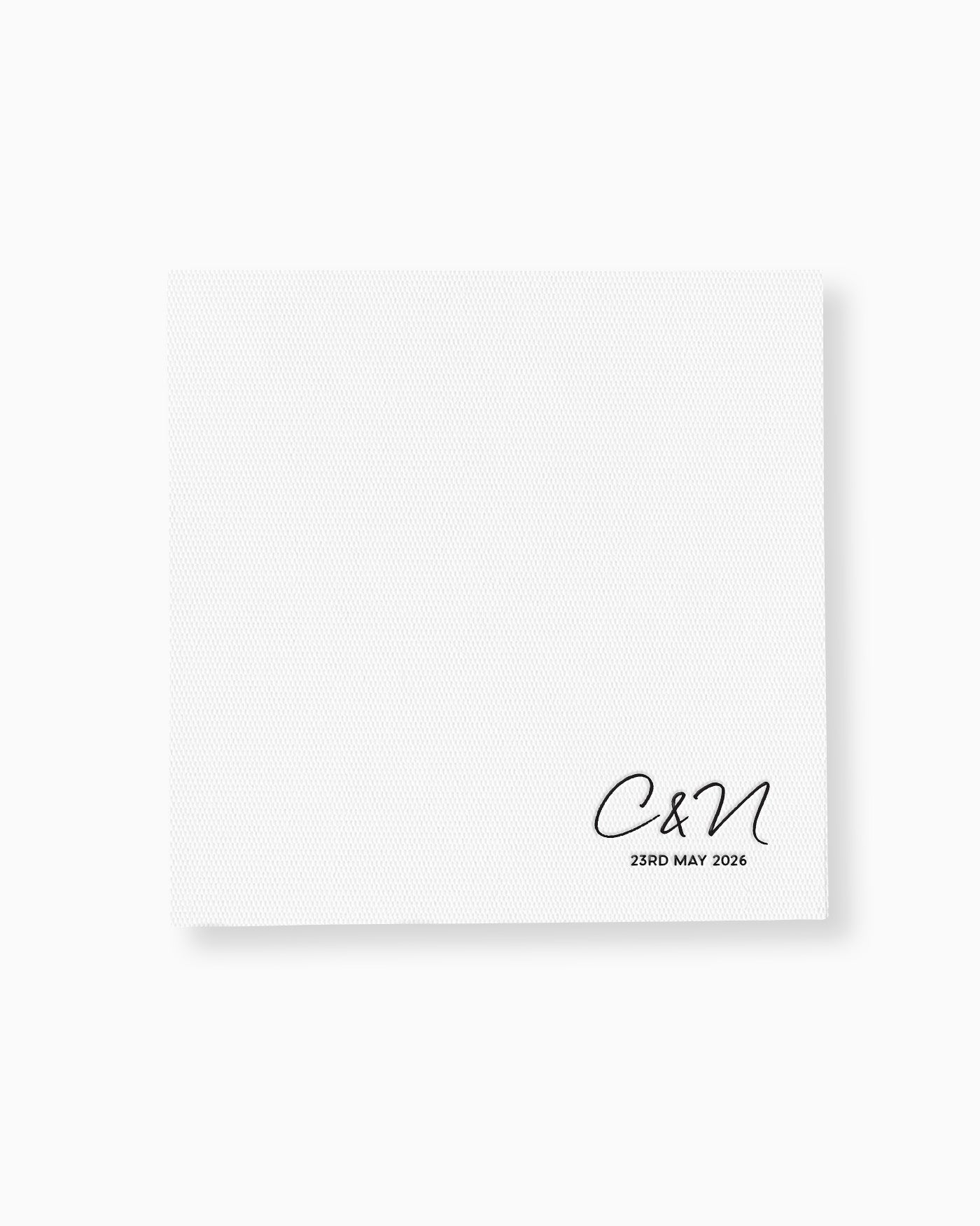 Our Clair Cocktail Napkins are the perfect addition to cocktail hour. Printed on premium white or black quilted cocktail napkins, they can be personalised to seamlessly match the rest of your event.