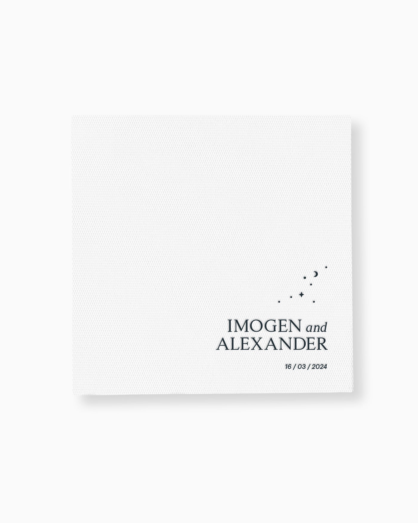 Our Luna Cocktail Napkins are the perfect addition to cocktail hour. Printed on premium white or black quilted cocktail napkins, they can be personalised to seamlessly match the rest of your event.