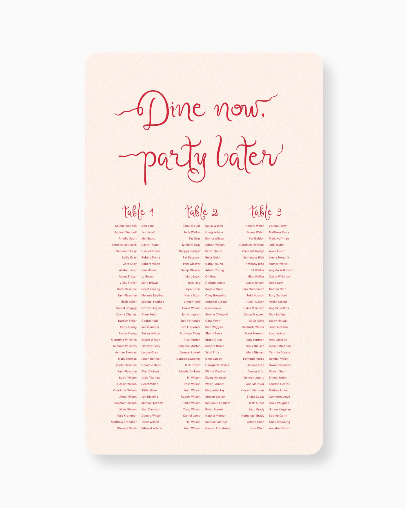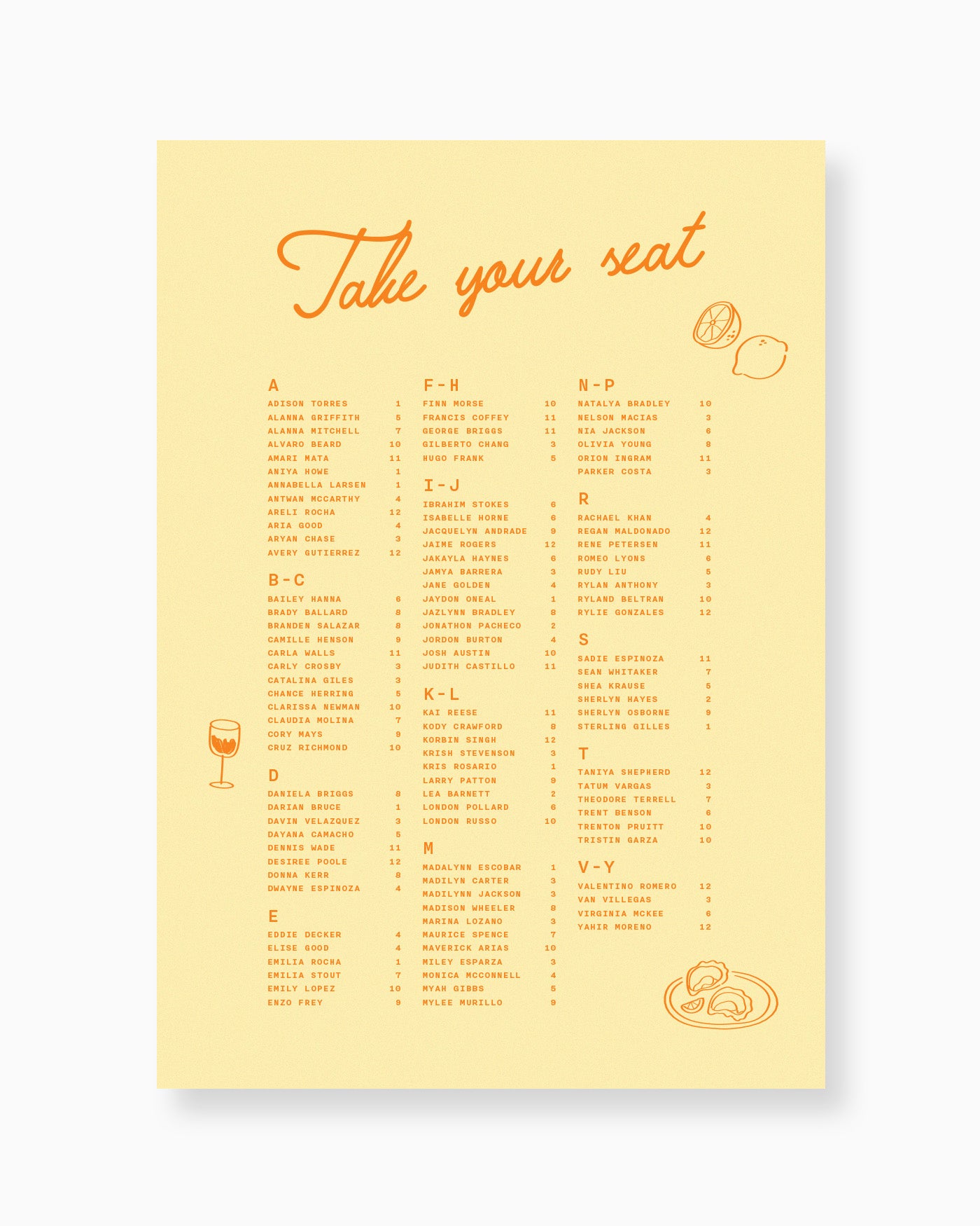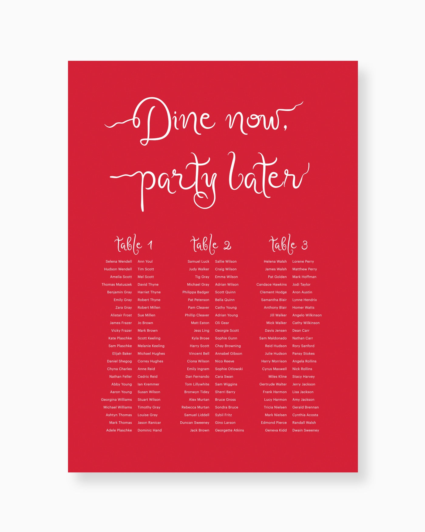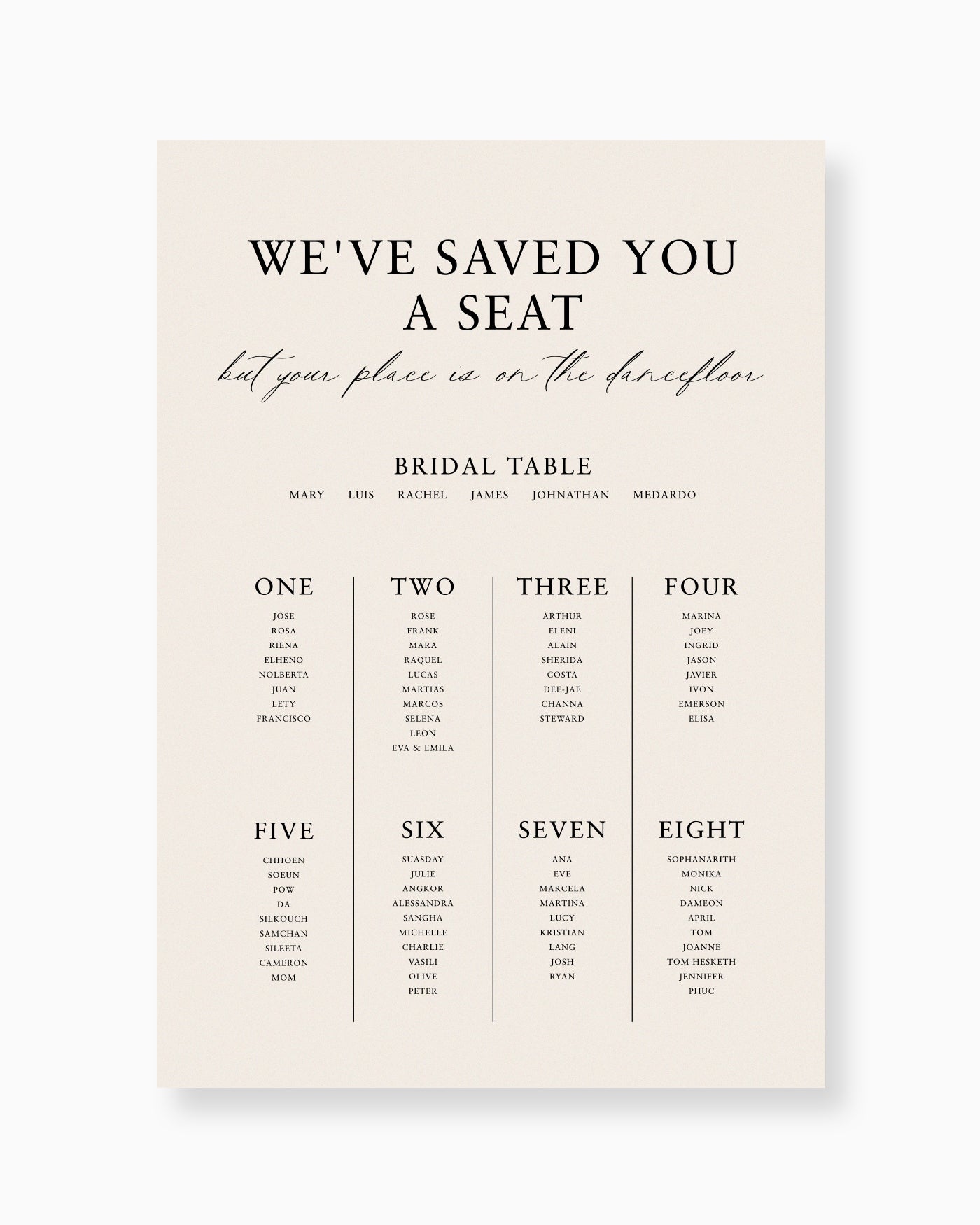 When personalising your chart, we can change the design to suit your venue layout e.g. communal tables, group tables or other layouts. All you need to do is provide your chart layout in our template during your consultation.