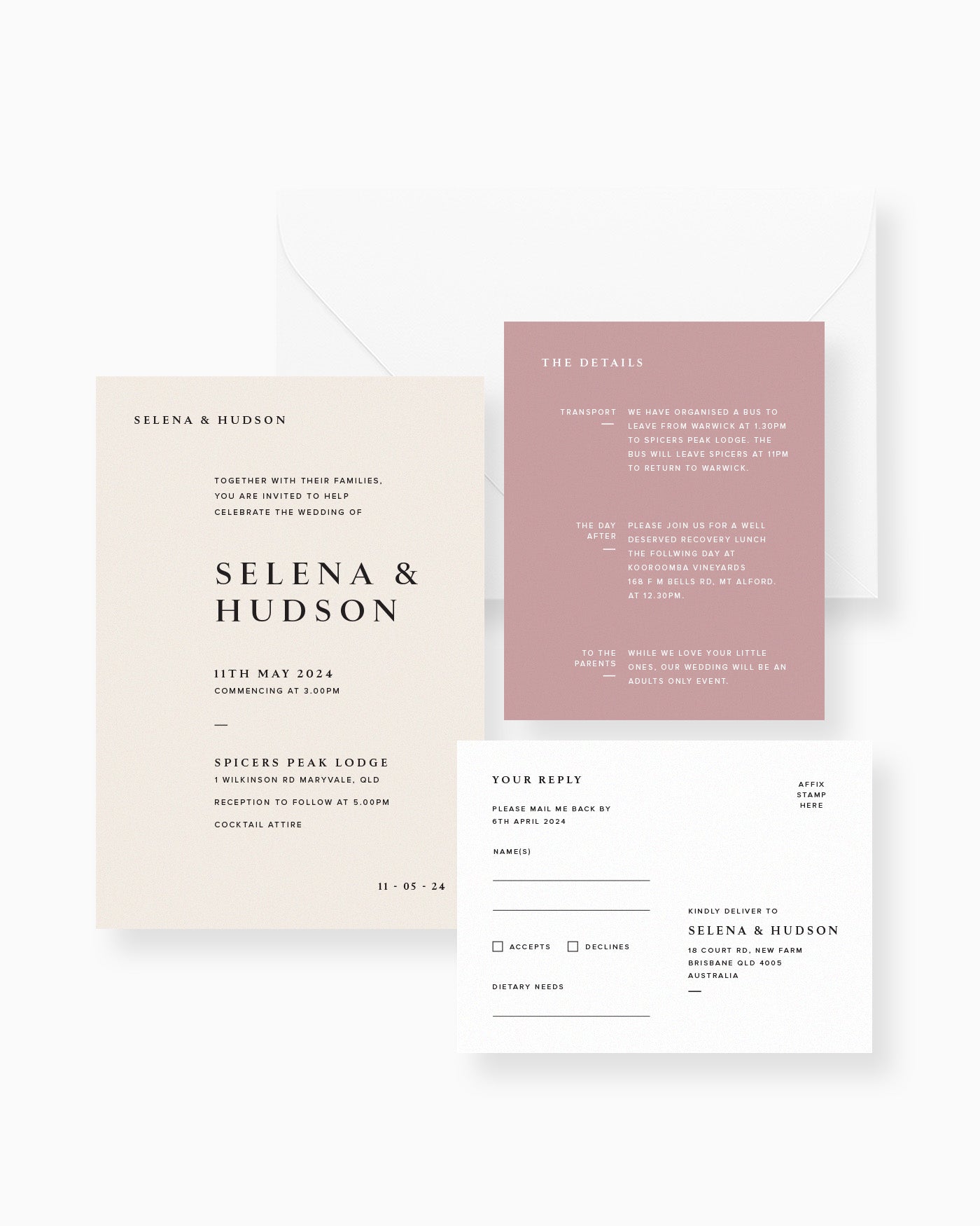 Playful alignment and elegant typography come together to create Selena; a timeless collection for modern day romantics and wedding daydreamers. Selena is available in wedding cards and invitations, along with save the dates and engagement invitations. For on the day signage look to items like welcome signs and seating charts, which paired with menus and other signage can provide a cohesive look to your wedding.