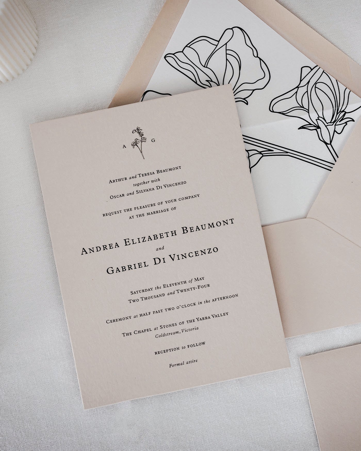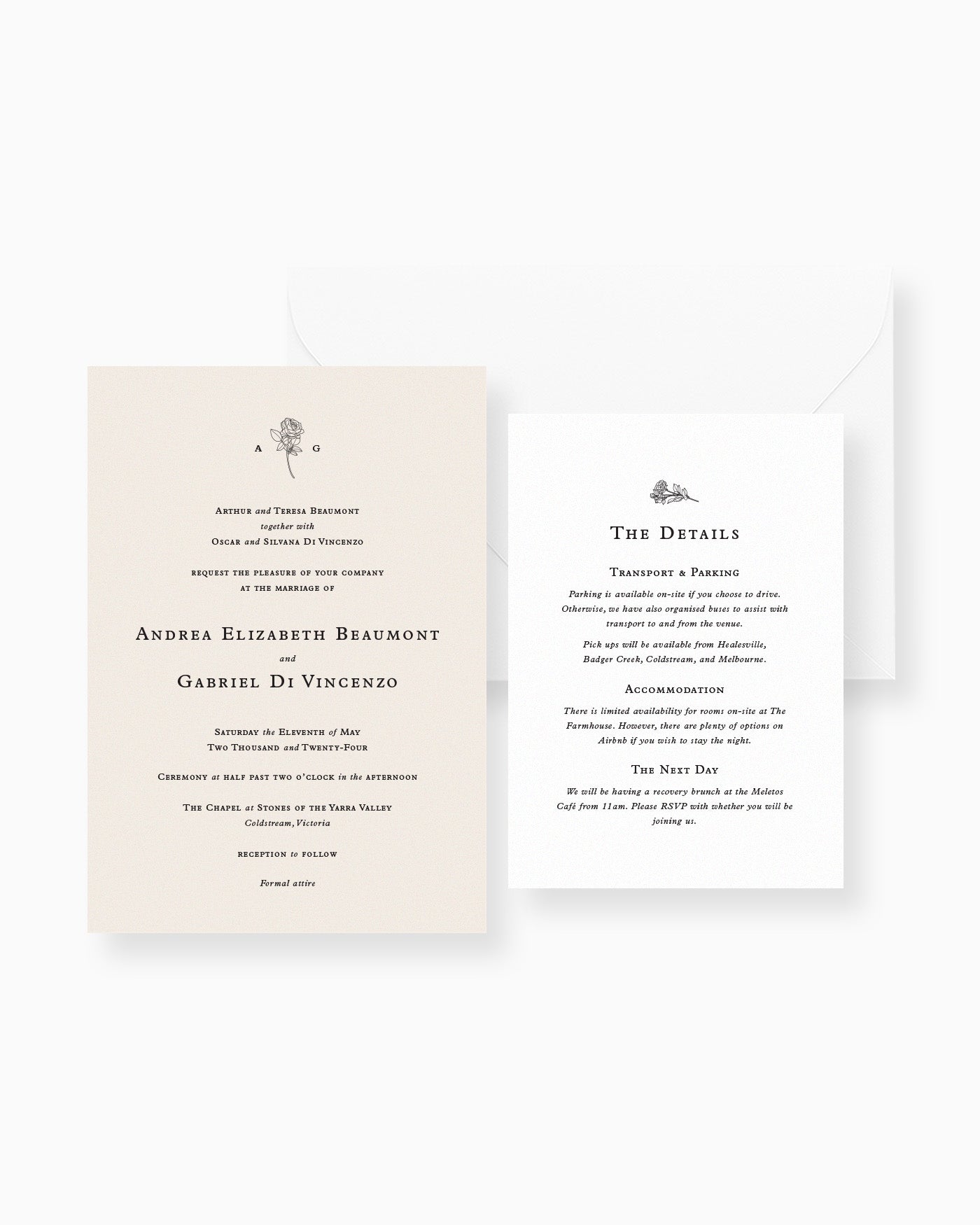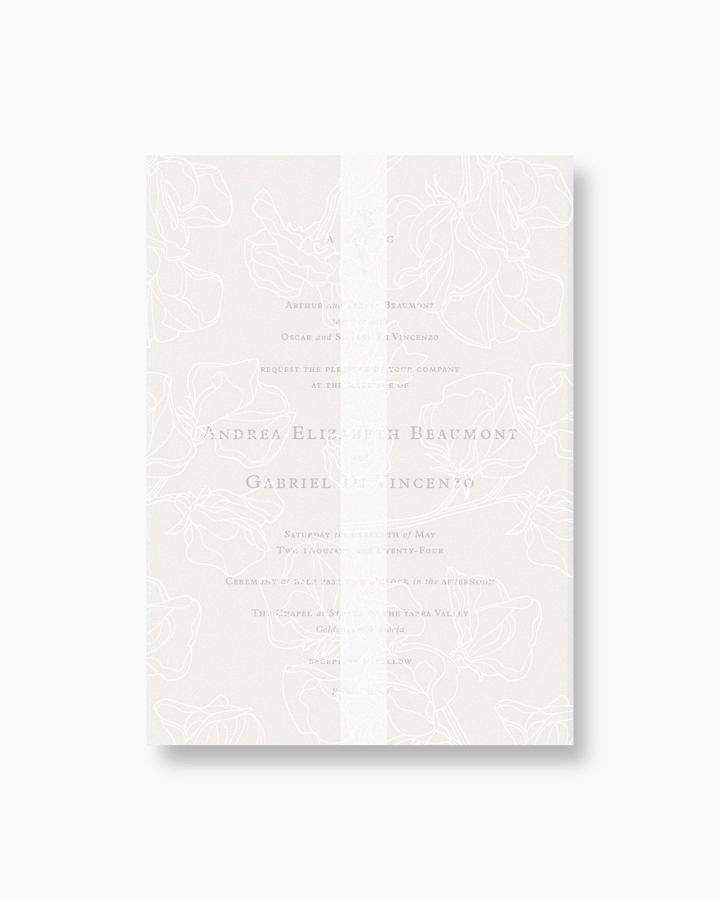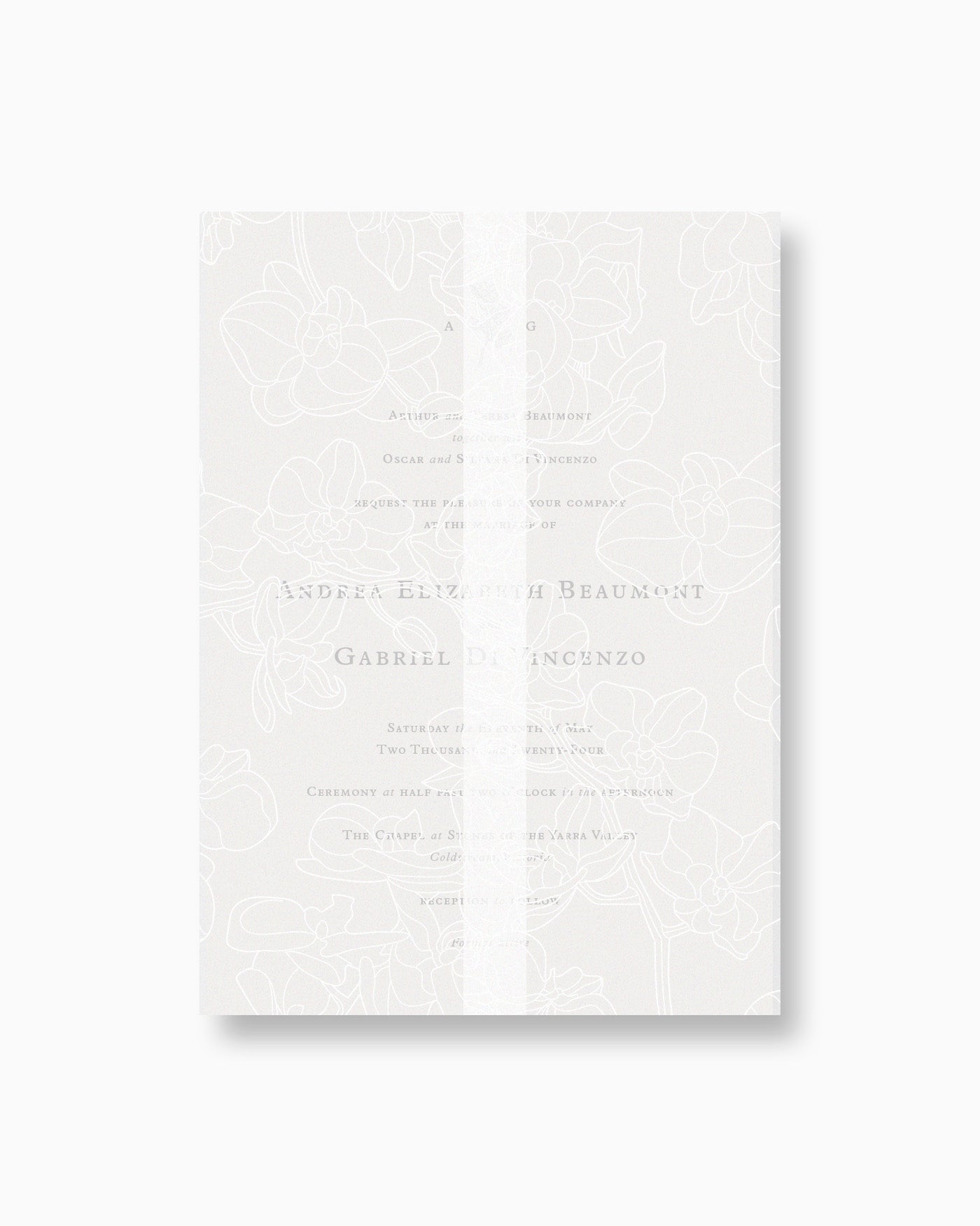 Immerse yourself in the enchantment of Verona with our exquisite collection of wedding stationery. Inspired by the timeless charm and captivating atmosphere of this northern Italian city, our collection lets you pick either sweet peas, orchids or roses to add to your collection.