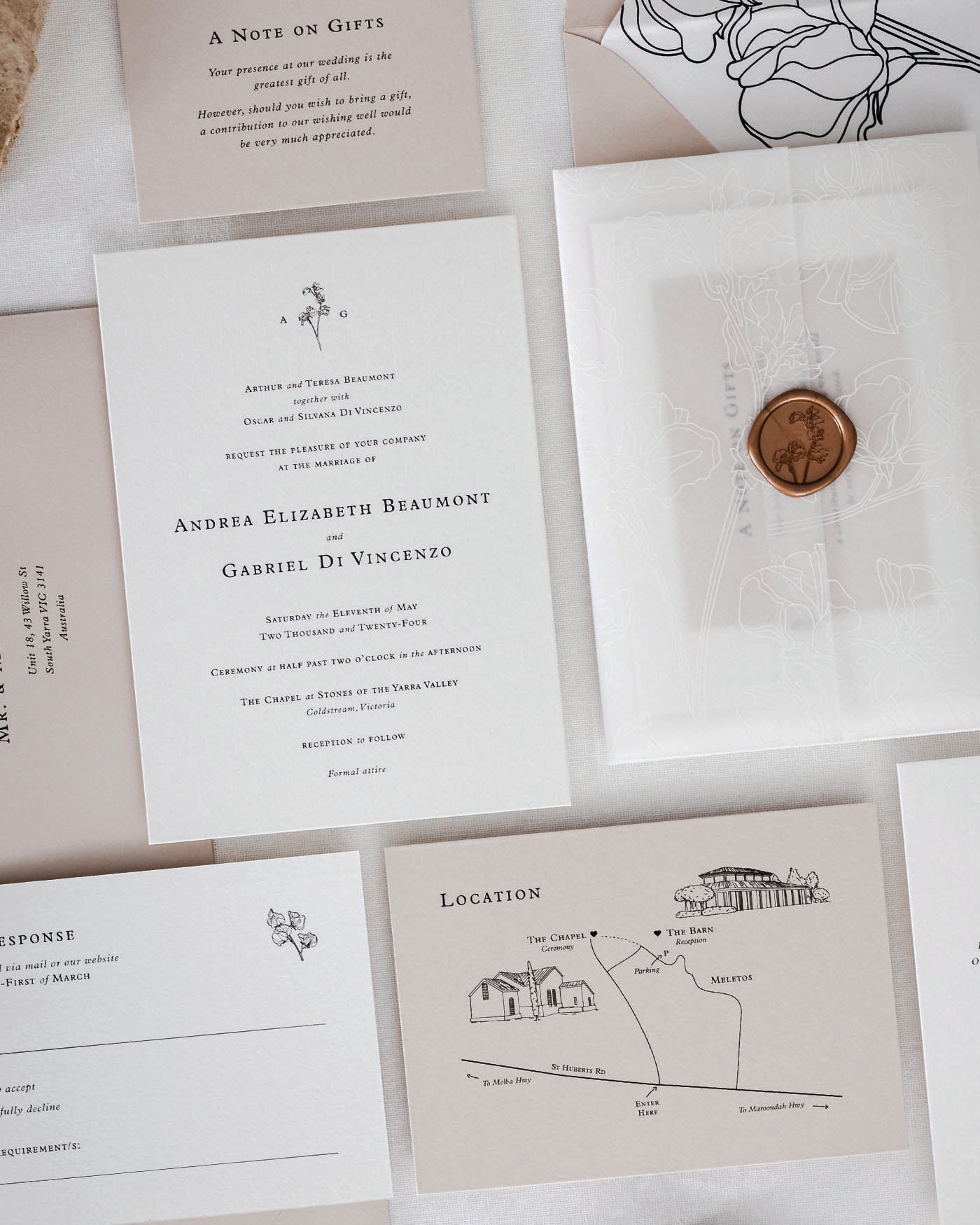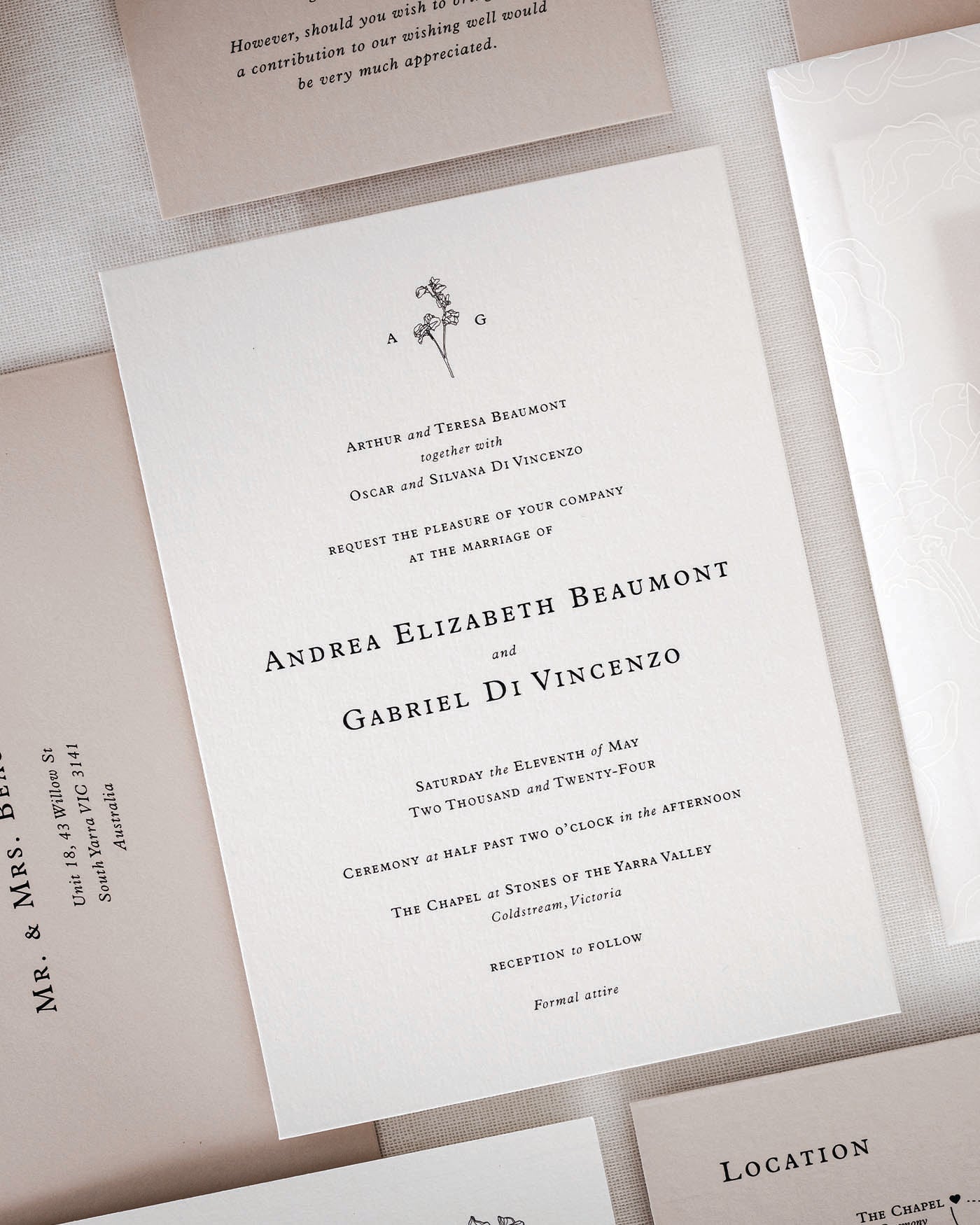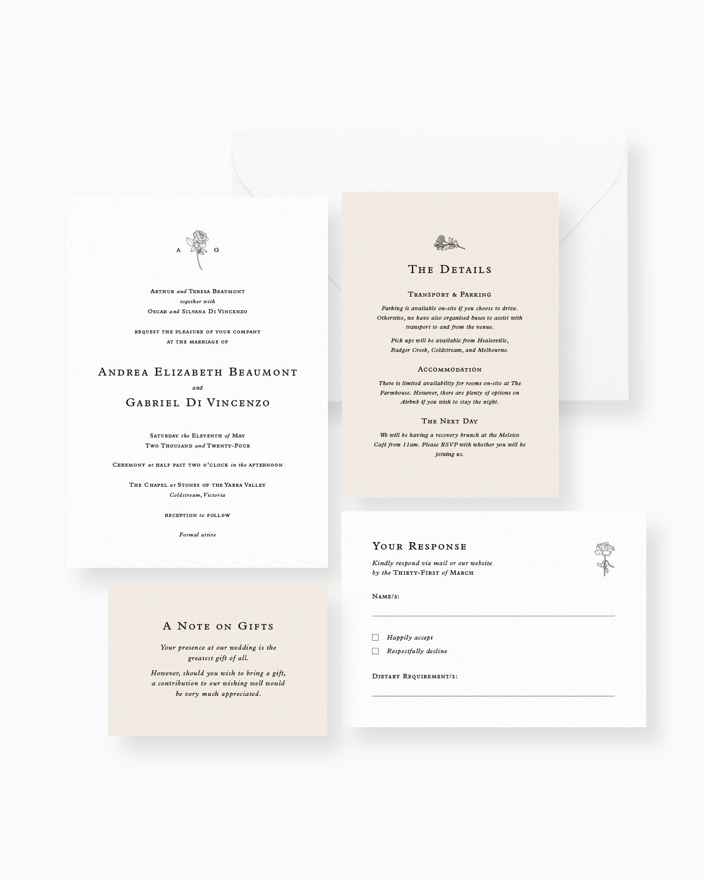 Immerse yourself in the enchantment of Verona with our exquisite collection of wedding stationery. Inspired by the timeless charm and captivating atmosphere of this northern Italian city, our collection lets you pick either sweet peas, orchids or roses to add to your collection.