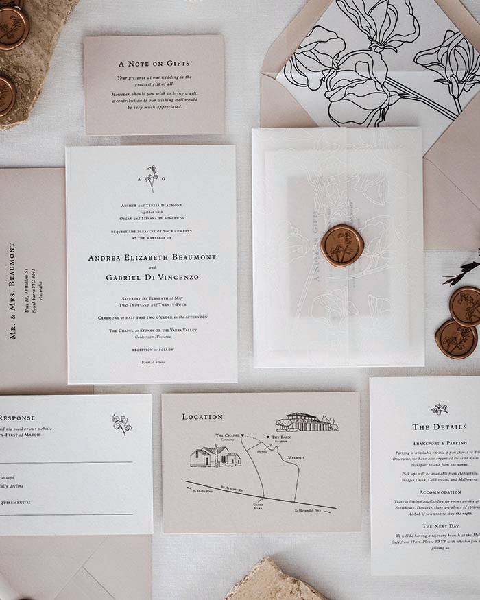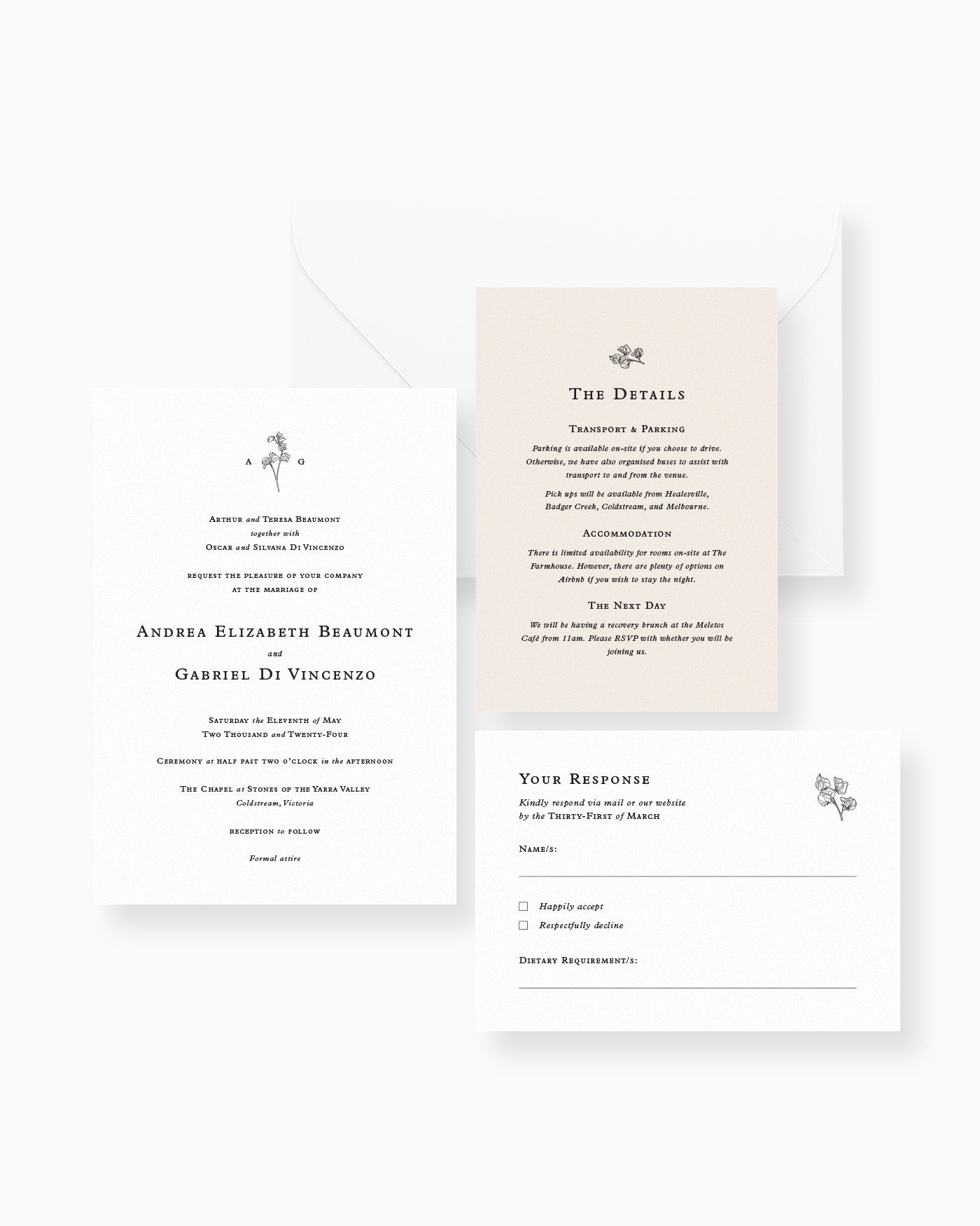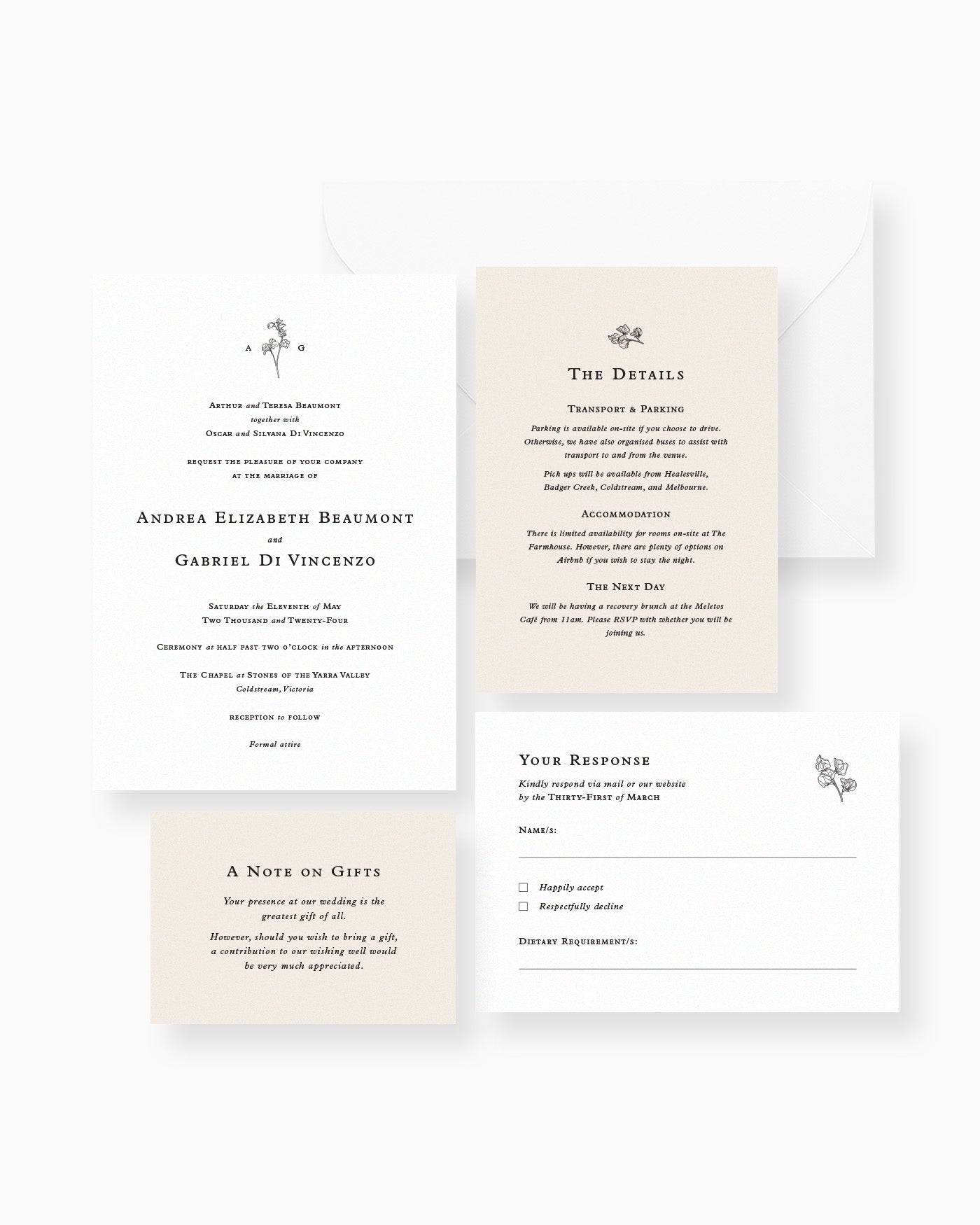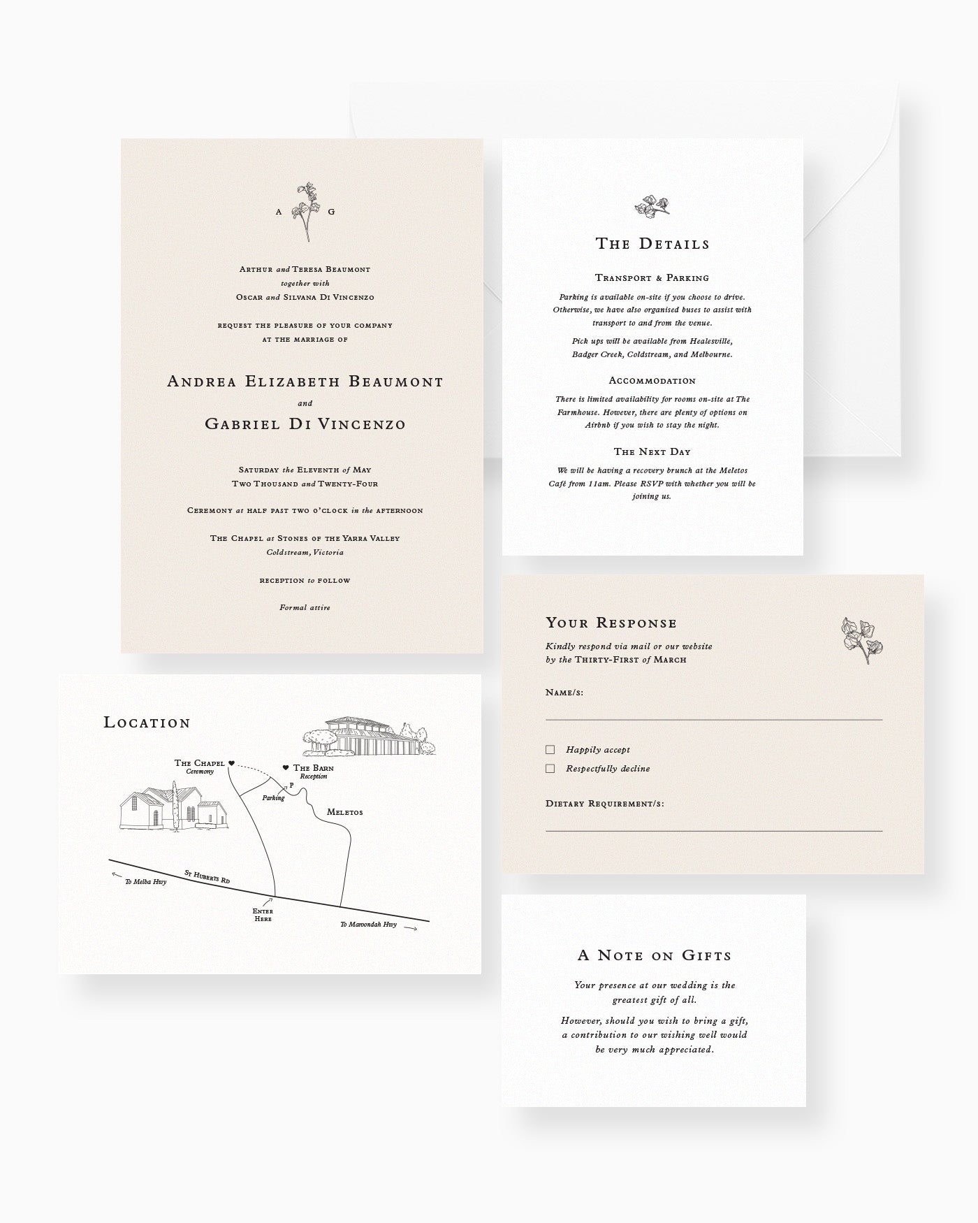 Immerse yourself in the enchantment of Verona with our exquisite collection of wedding stationery. Inspired by the timeless charm and captivating atmosphere of this northern Italian city, our collection lets you pick either sweet peas, orchids or roses to add to your collection.