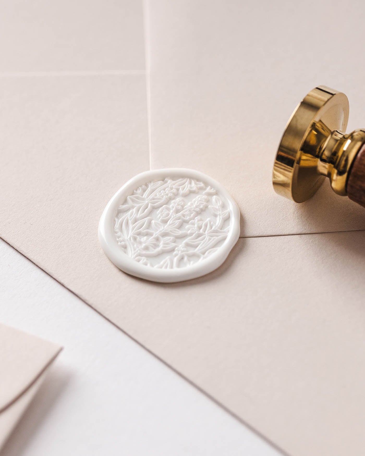 The Botanicals wax stamp design features an intricate mix of small flowers and delicate buds, weaving together to create a captivating and elegant pattern.