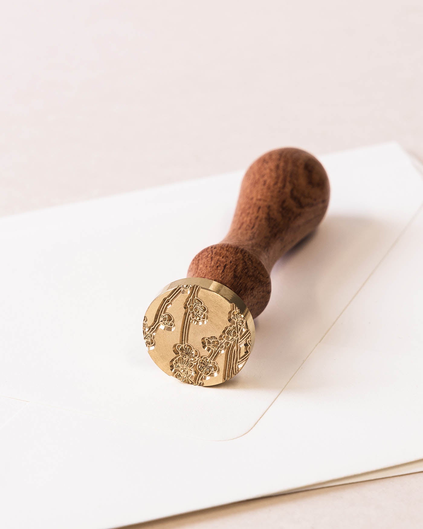 Delicate sakura branches adorned with small blossoms, combining a minimalist aesthetic with intricate detailing to create a beautifully refined wax seal.