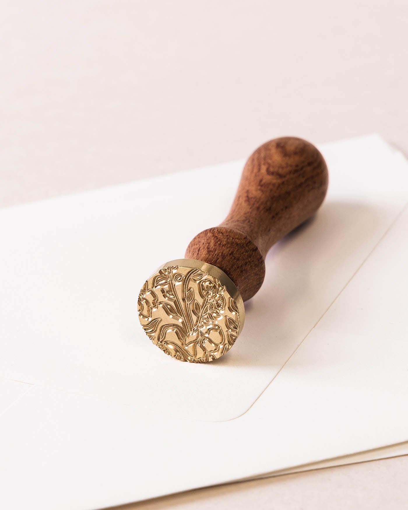 Each stamp is deeply engraved to create the perfect impression, and is paired with a rosewood handle for a natural and comfortable grip when sealing your stationery and effects.