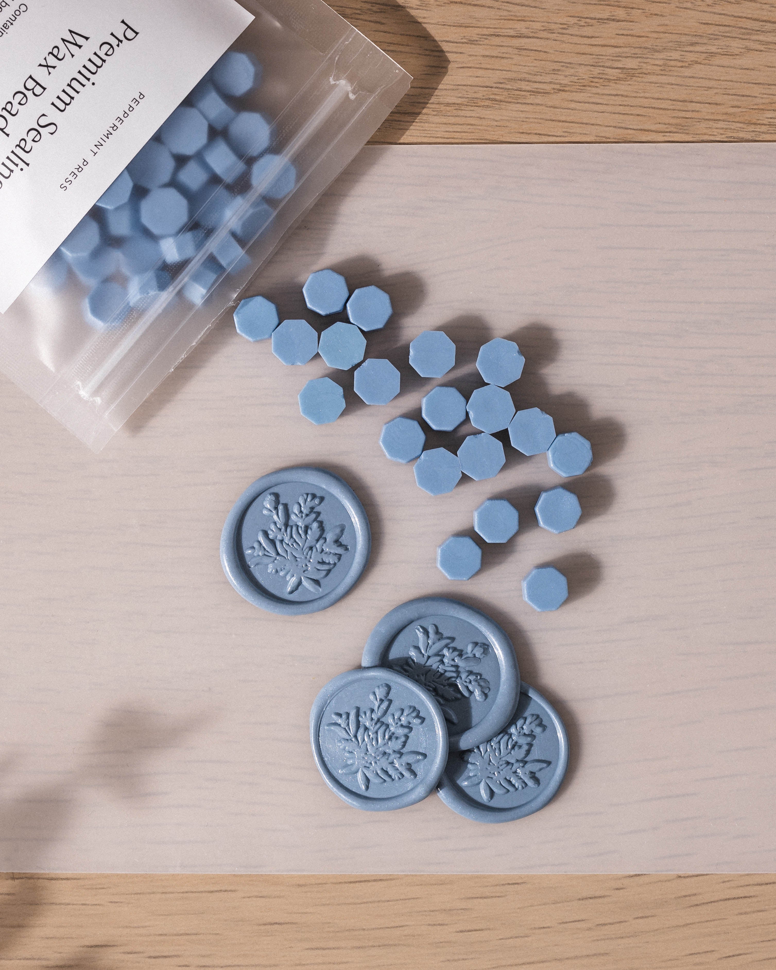 Dusty Blue is a muted blue grey that adds a vintage appeal to any wax seal.
