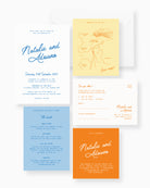 Amalfi embodies your relaxed and vibrant event. Fresh and delicious seafood, citruses, foods and produce are captured in charming hand drawn illustrations, reflecting the cherished moments with friends and family who have come together from near and far to celebrate your special day.