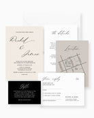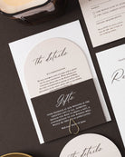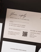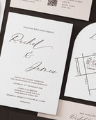 The Amour Five Card Package includes the Amour Wedding Invitation with a premium white envelope, as well as four enclosure cards per suite. The enclosure cards included are: