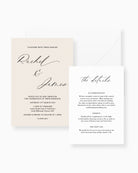 The Amour Two Card Package includes the Amour Wedding Invitation with a premium white envelope, as well as one enclosure card. You can choose from the following cards during your design consultation after purchase: