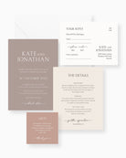 The Balmoral Four Card Package captures the essence of the Balmoral beachfront and promenade with its heritage-inspired design and relaxed elegance. From the intricate details to the luxurious card stock, this invitation package is the perfect way to invite your guests to experience the refined charm of your wedding day.