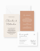 The Clair Three Card Package includes the invitation with a premium white envelope, as well as choice of two enclosure cards. You can choose from the following cards during your design consultation after purchase: