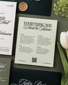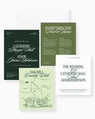 The Heritage Four Card Package includes the invitation with a premium white envelope, as well as choice of three enclosure cards. You can choose from the following cards during your design consultation after purchase:
