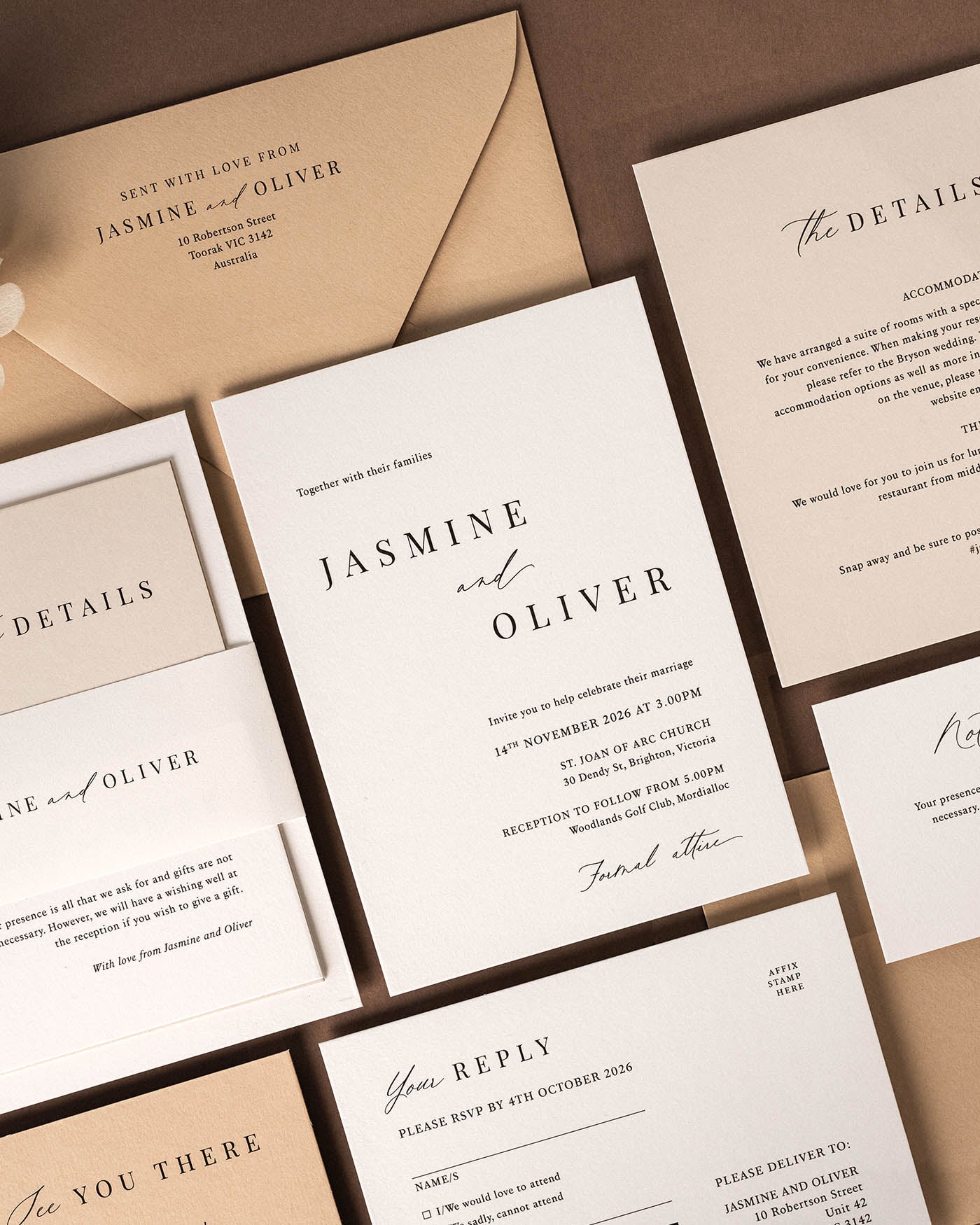 At Peppermint Press, we offer a certain amount of freedom for personalisation of our wedding invitations. During the design process, your designer will provide the opportunity for customisation of the colours and the wording of your invitations.
