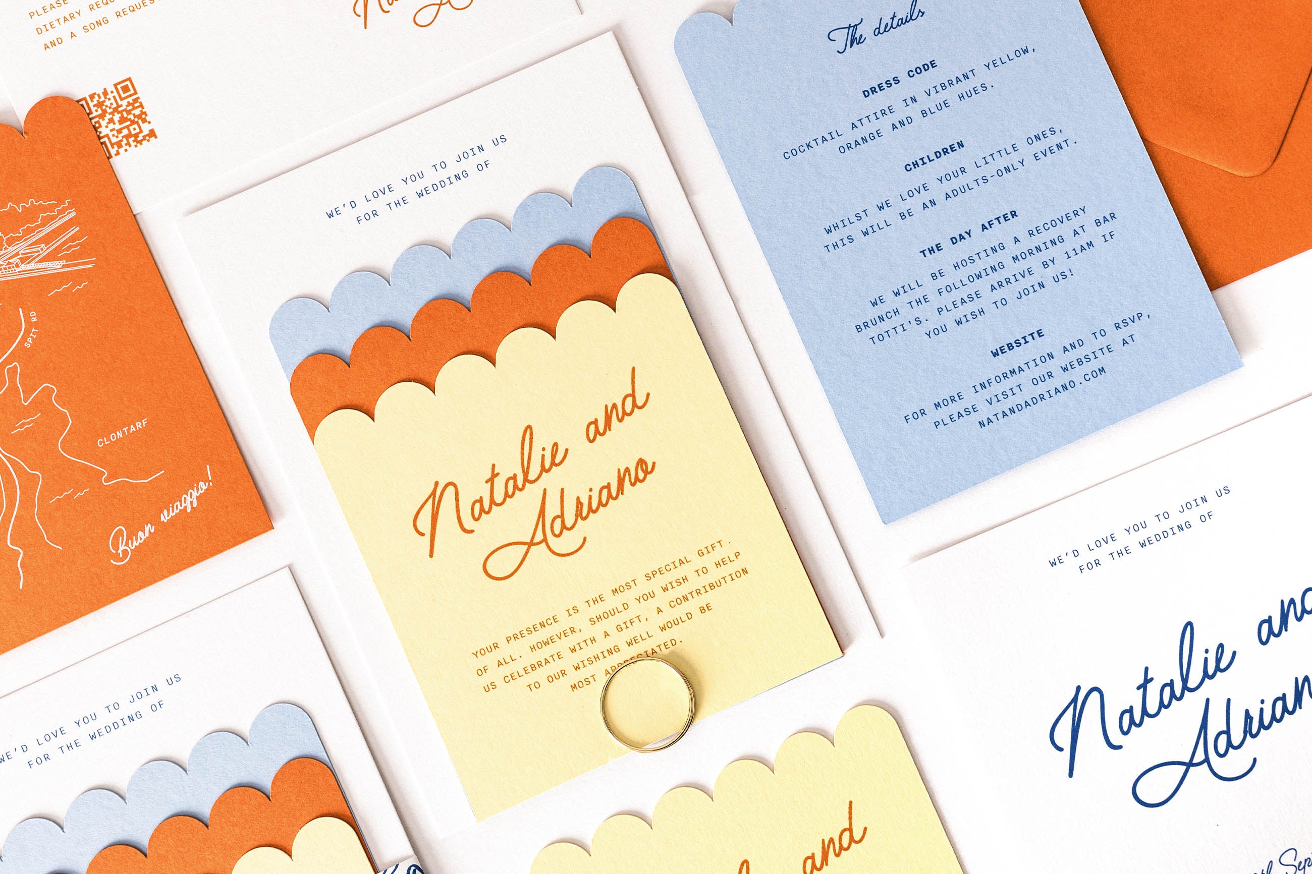 Including pieces from save the dates and bridal shower invitations, to invitation packages and a full suite of on-the-day items, Amalfi lets you brand your wedding to perfectly represent you as a couple.