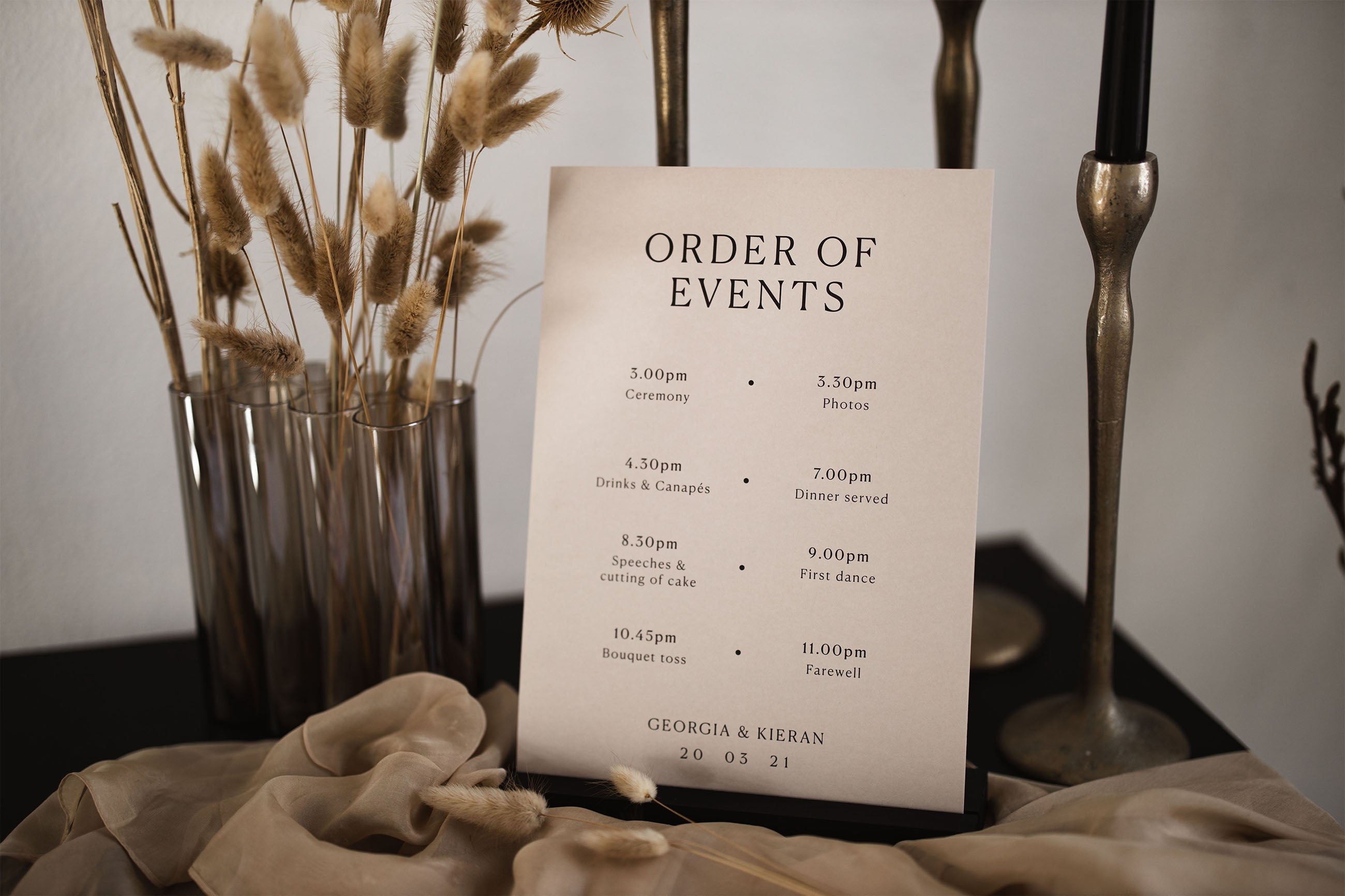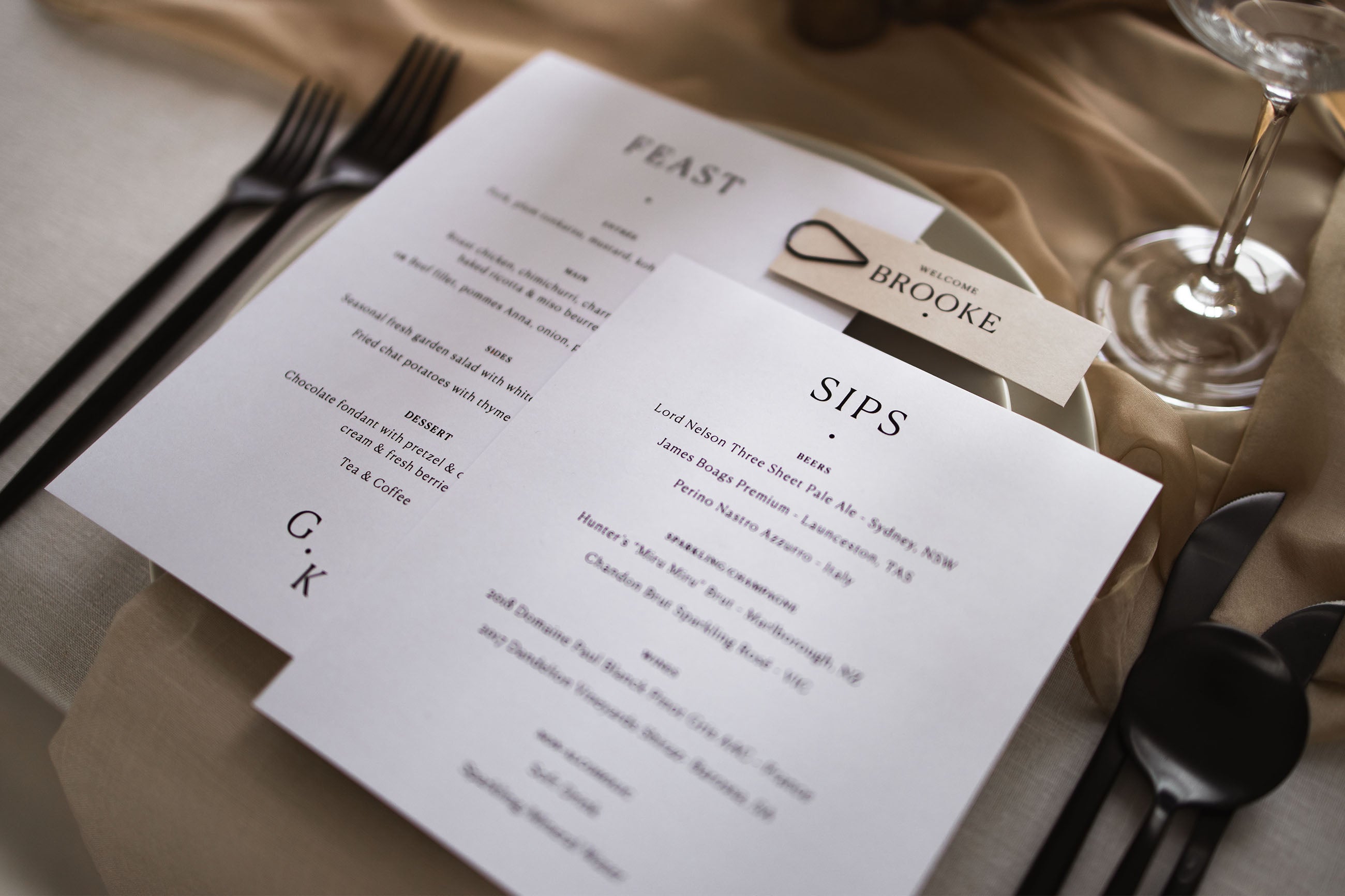 Make your event unique with pieces like our statement die cut folding menus, petal pockets, coasters and signage. Georgia was shot in our Sandalwood colour theme but is available in any of our gorgeous options.
