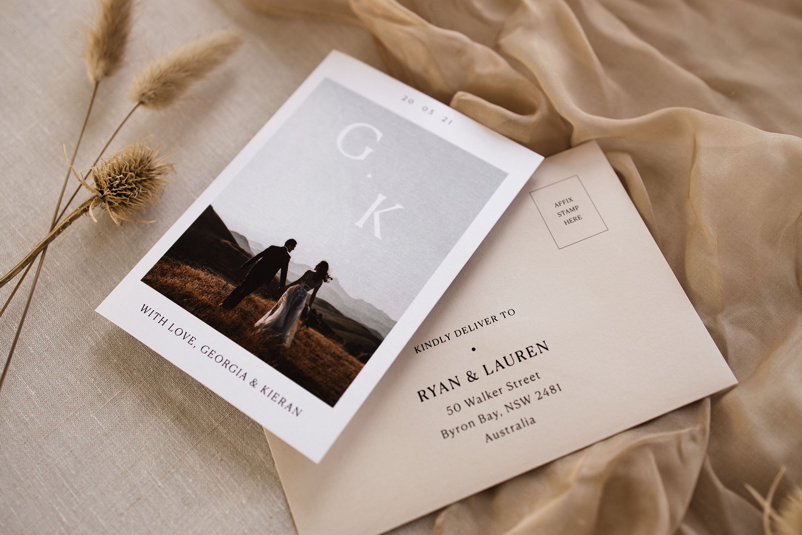 Including pieces from save the dates and bridal shower invitations, to invitation packages and a full suite of on-the-day items, Georgia lets you brand your wedding to perfectly represent you as a couple.