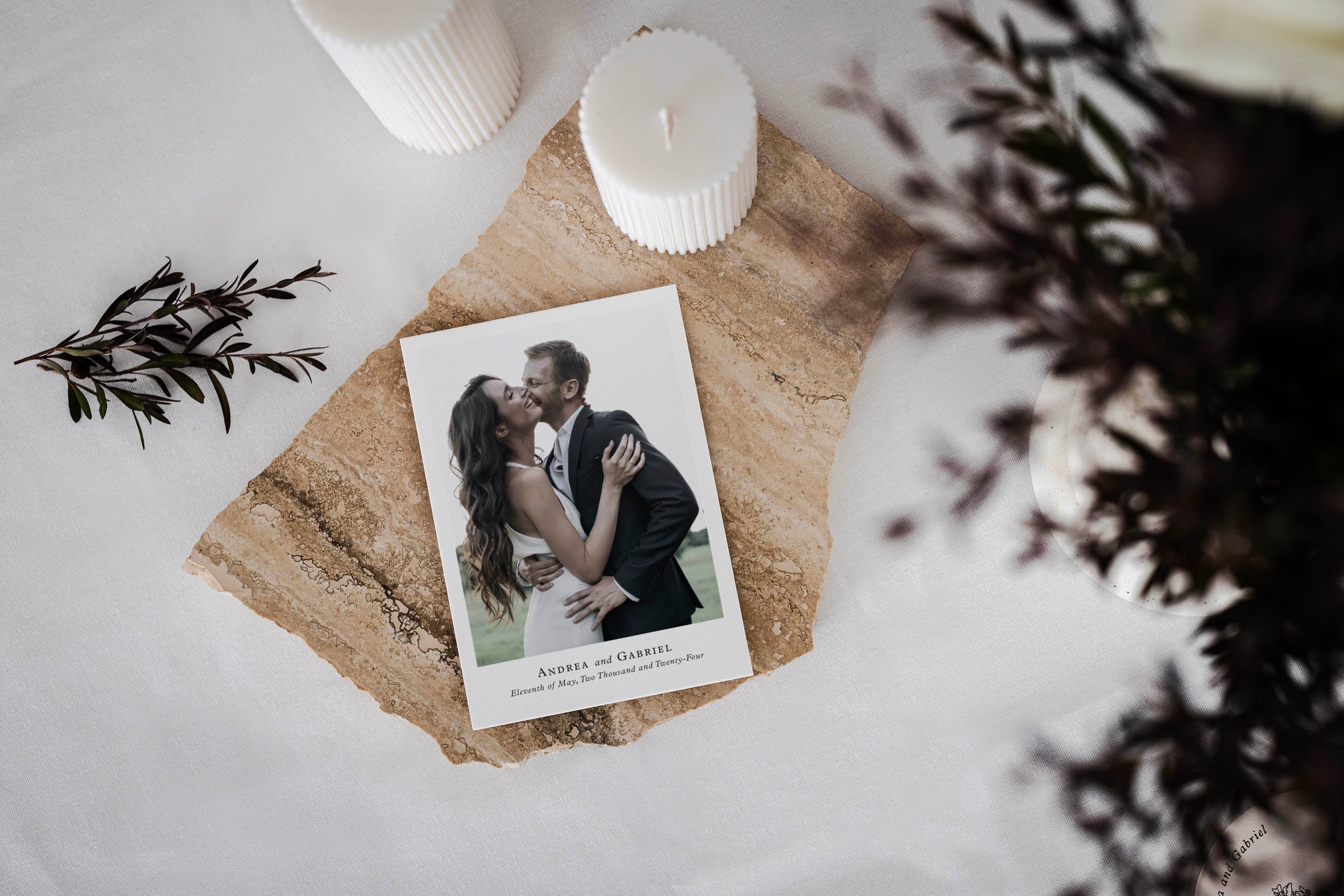 Make your event unique with pieces like our menus, petal pockets, coasters and signage. Verona was shot in our almond and white card colours but is available in any of our gorgeous options.