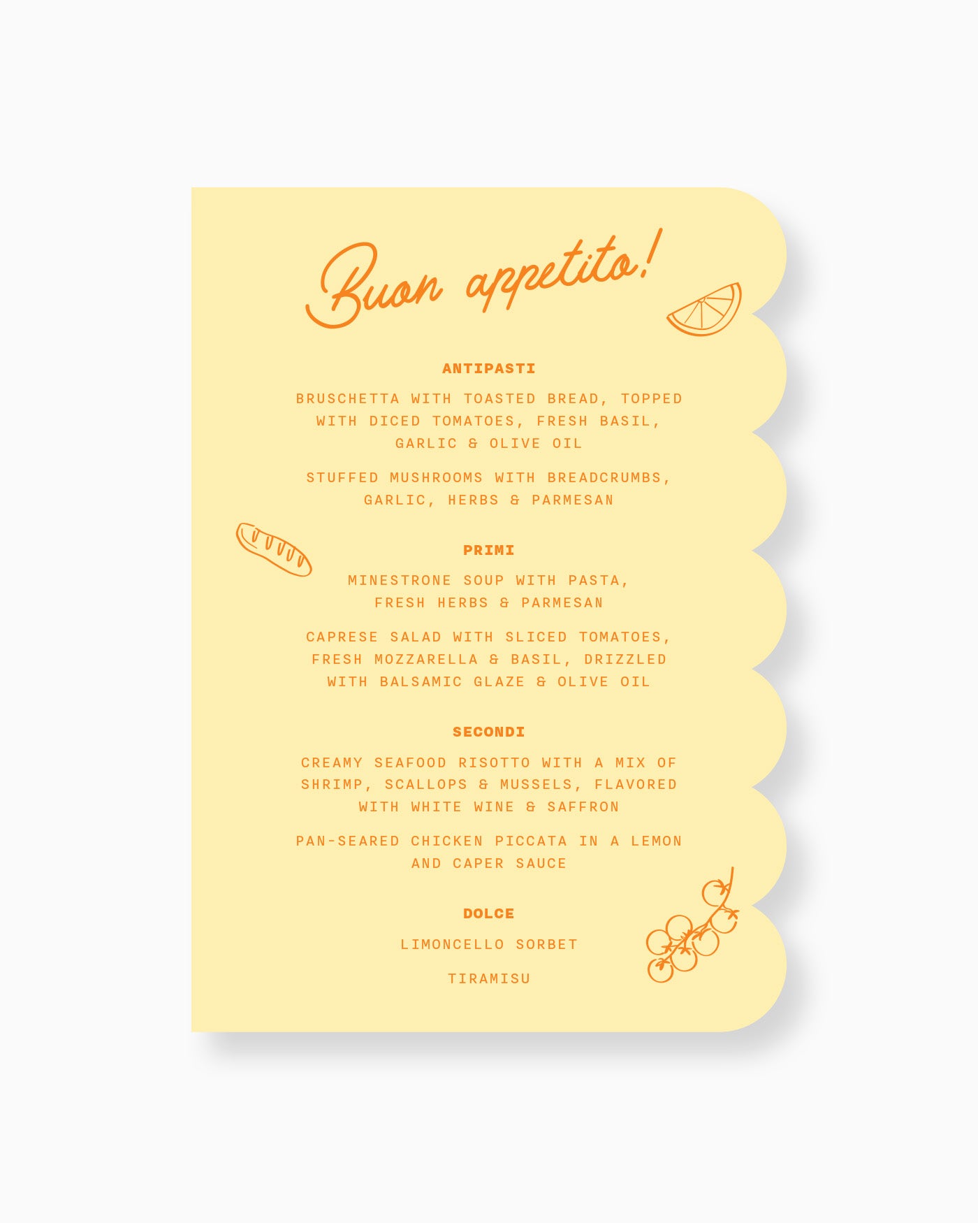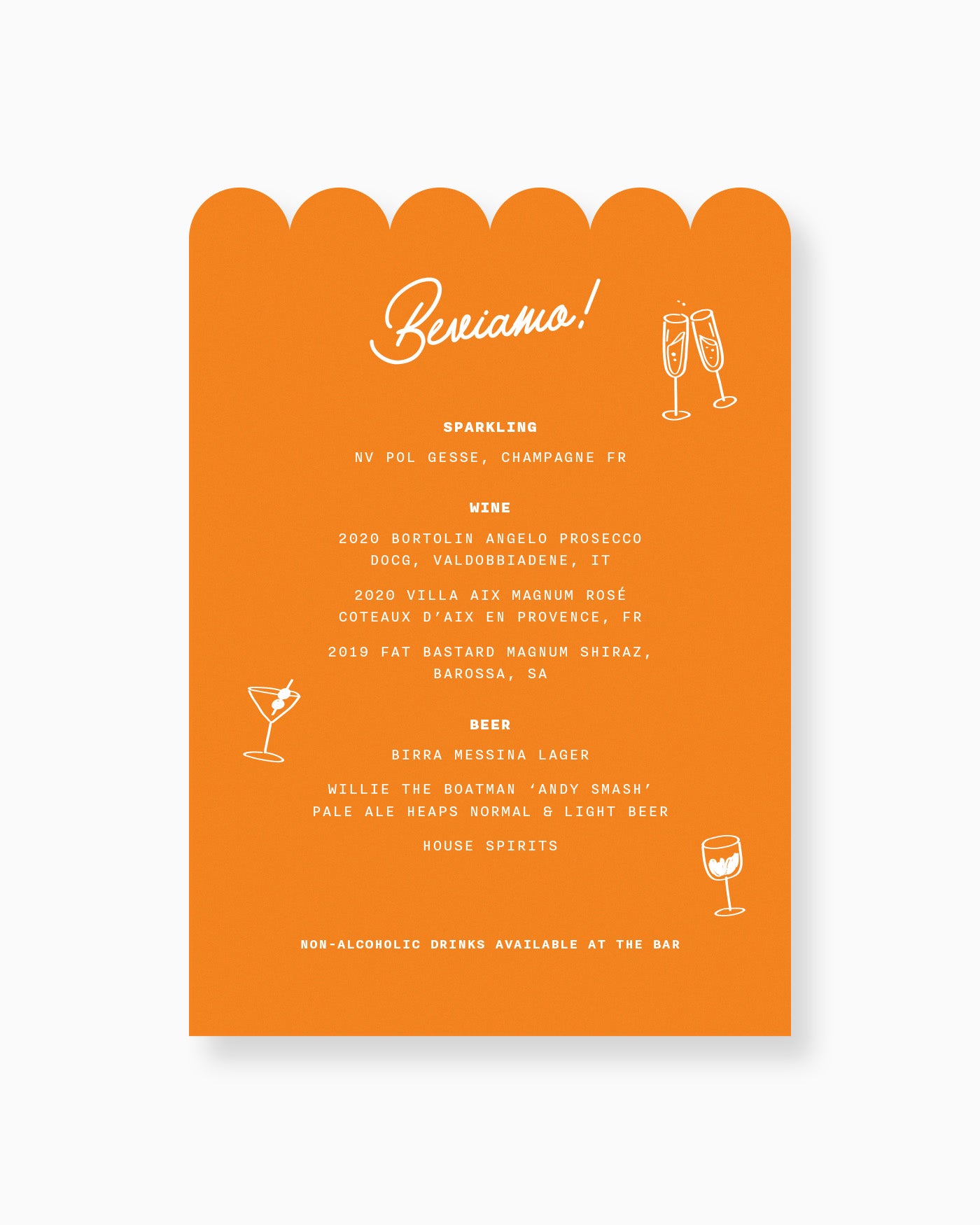 Inform your guests about the food and drink options at your event with the Amalfi Table Menus. These table menus are A5 in size and can be printed onto card or 3mm foam board. Pairing well with our A4 and A5 signage packages, these make a perfect addition to your event styling.