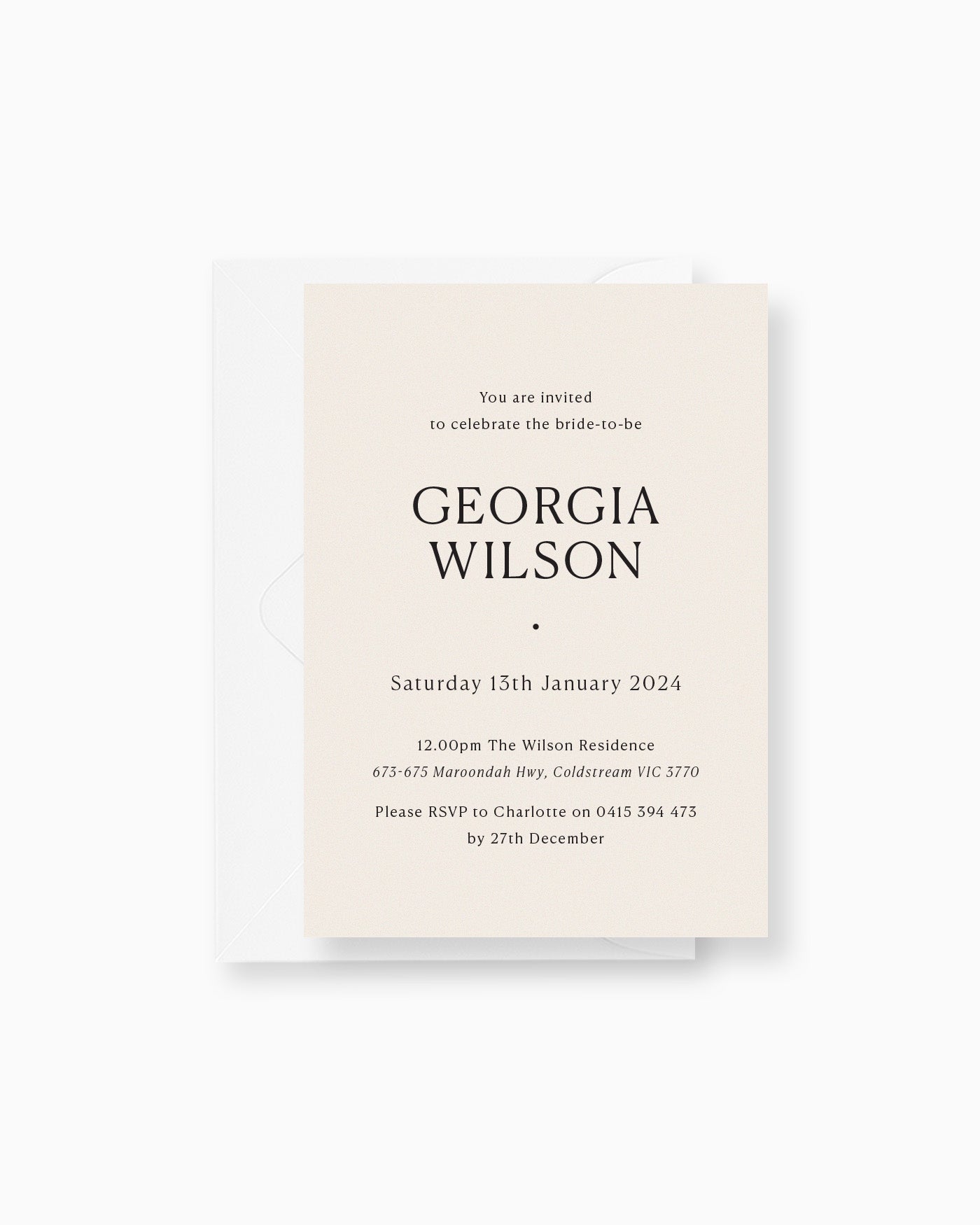 Celebrate your upcoming wedding with our Georgia Bridal Shower Invitation. Printed on premium card stock and personalised to your event, our elegant and beautiful invitations will set the tone for a memorable celebration with friends and family. Make your bridal shower unforgettable with our stunning Georgia invitations.