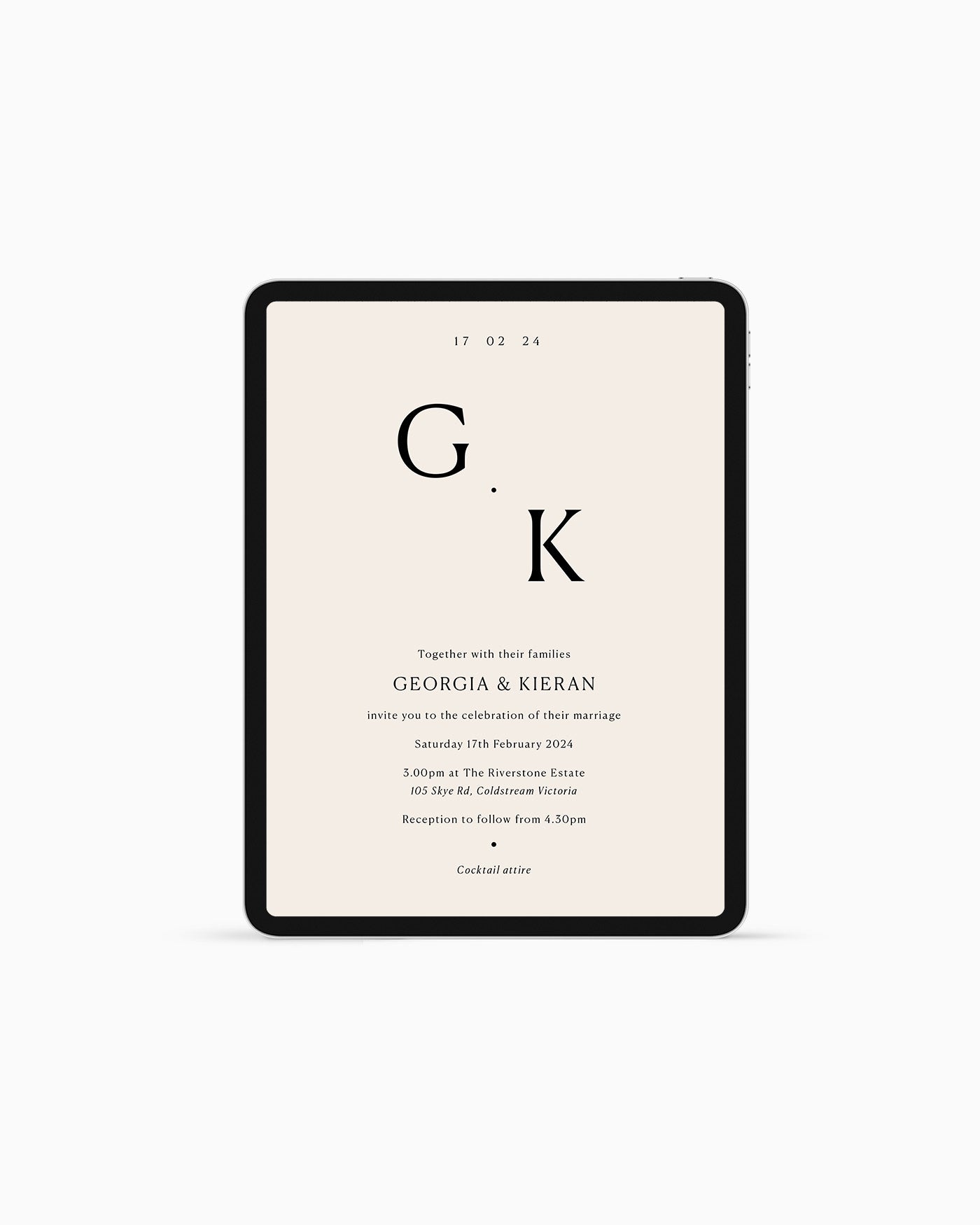 The Georgia eInvitation is designed for emailing or messaging to your guests. You will be provided with a jpeg of your eSave the Date ready for you to send to your family and friends via email or text message.