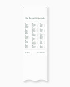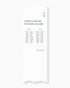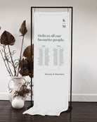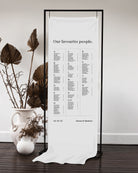Introduce your guests to their seats with the Narrative Fabric Seating Chart. With a choice of customisable layouts, this seating chart can fit any venue and table arrangement. The design is printed directly onto a premium linen blend.