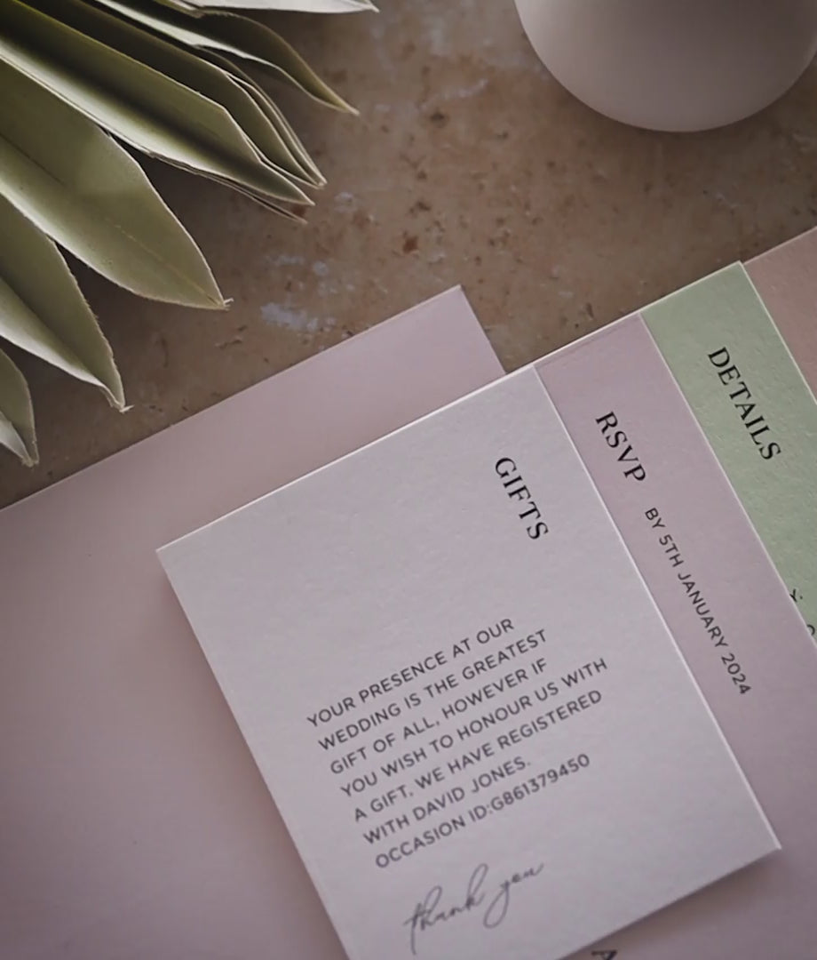 Your stationery will be crafted by one designer throughout your whole journey, taking your details and input to tailor each design to your personality and style as a couple.
