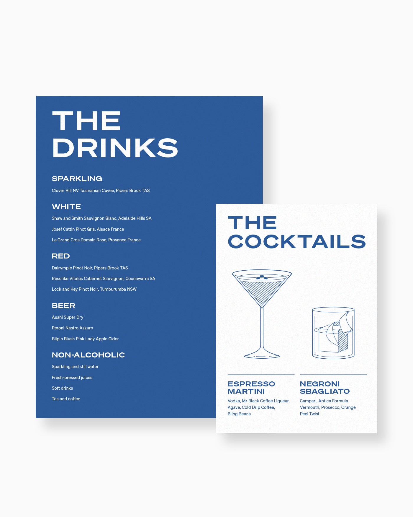 - Dimensions: 210x297mm, 148x210mm cocktail menu if chosen